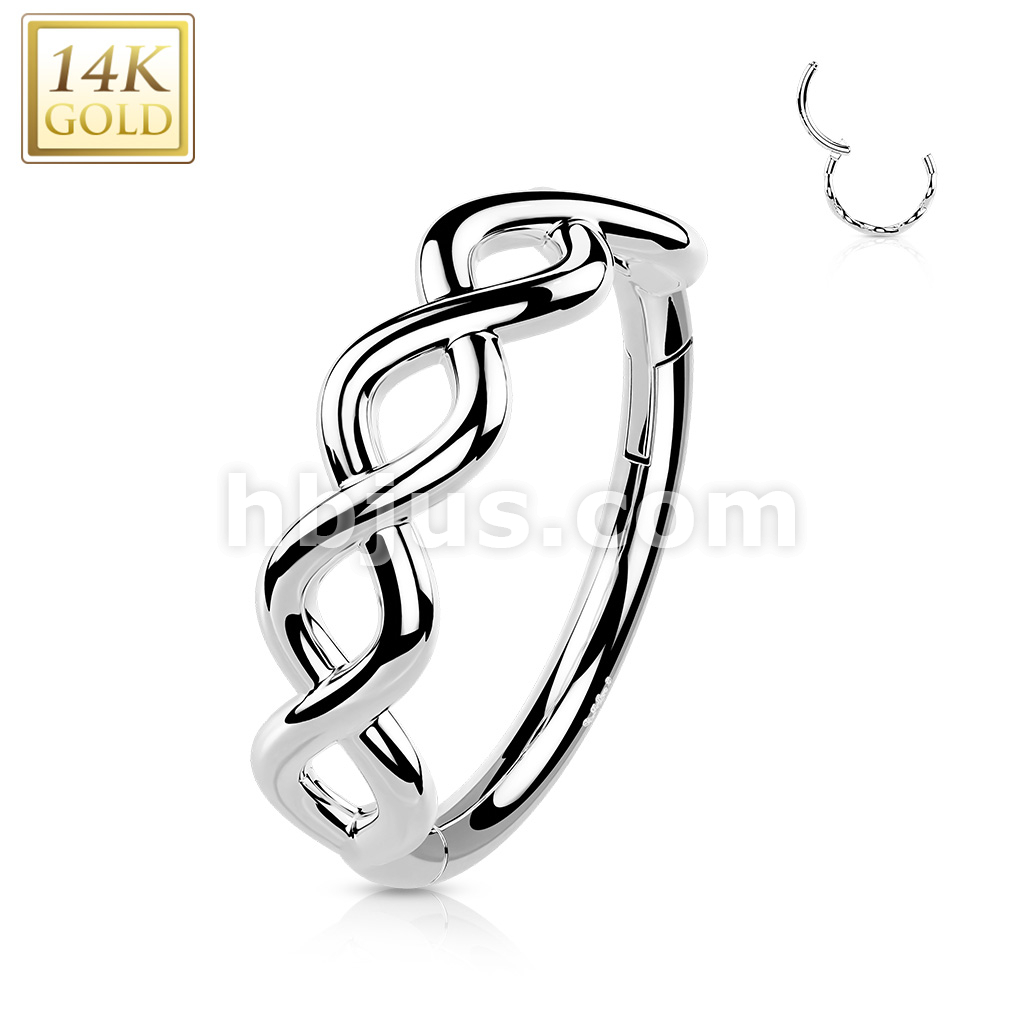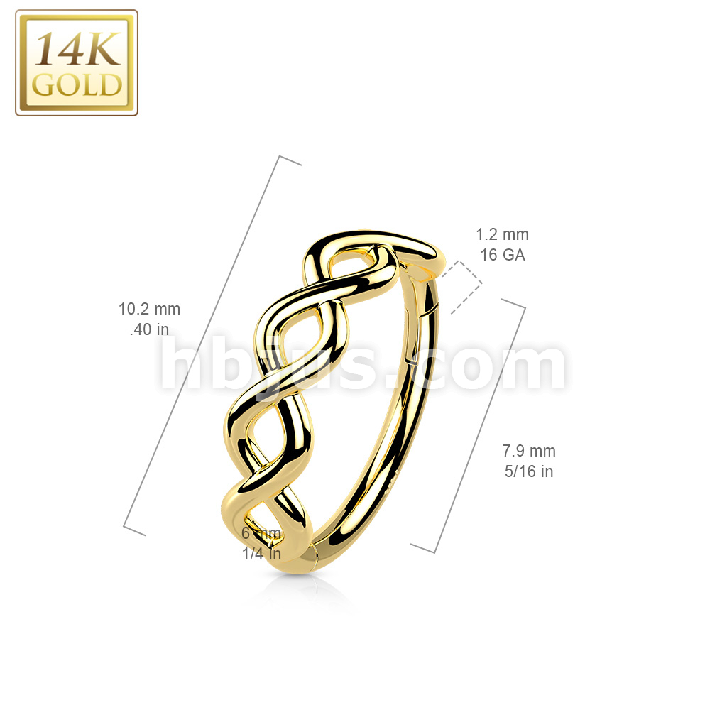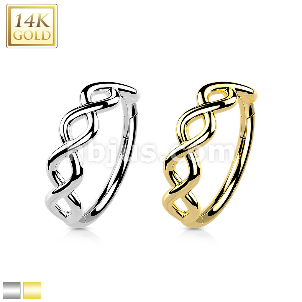 14K Gold Hinged Segment Hoop Ring with Side Facing Infinity Twist