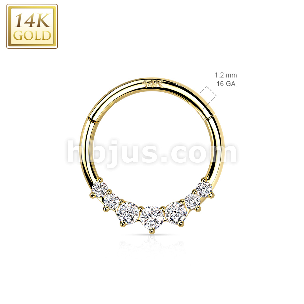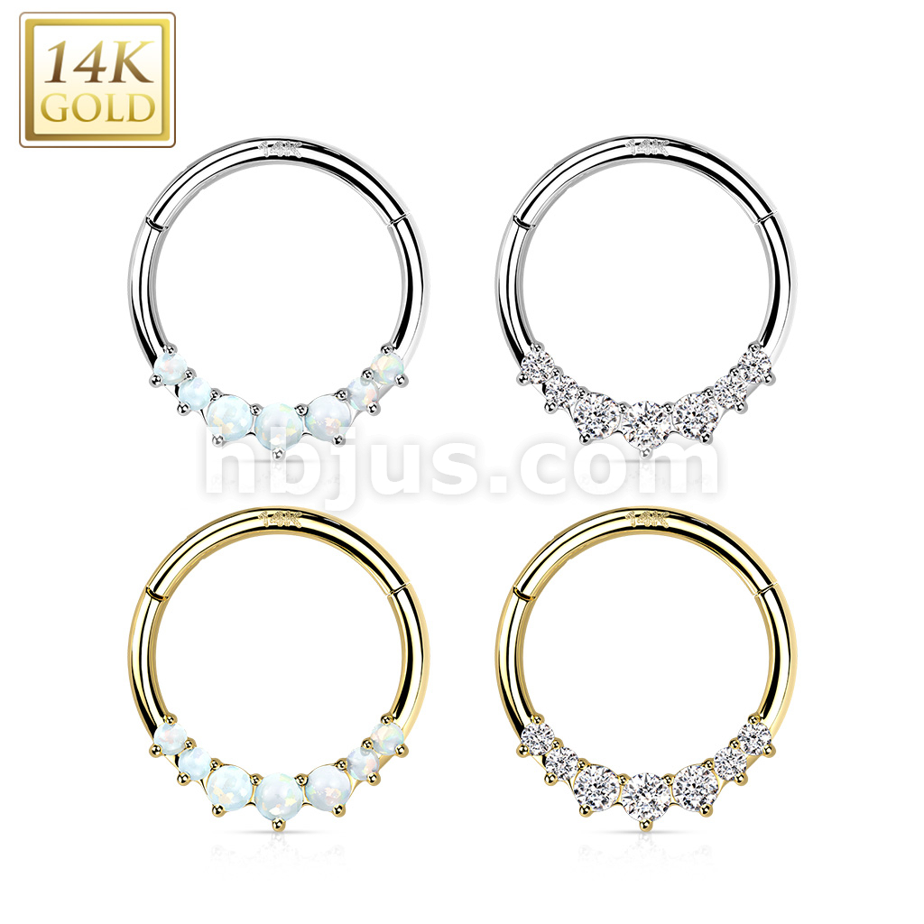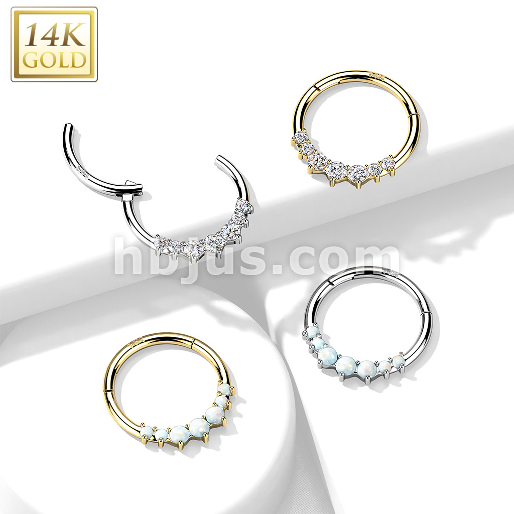 14K Gold Forward Facing 7 Opal or 7 CZ Hinged Segment Hoop Ring