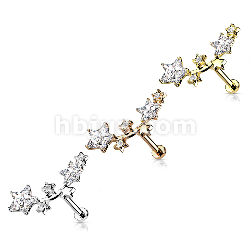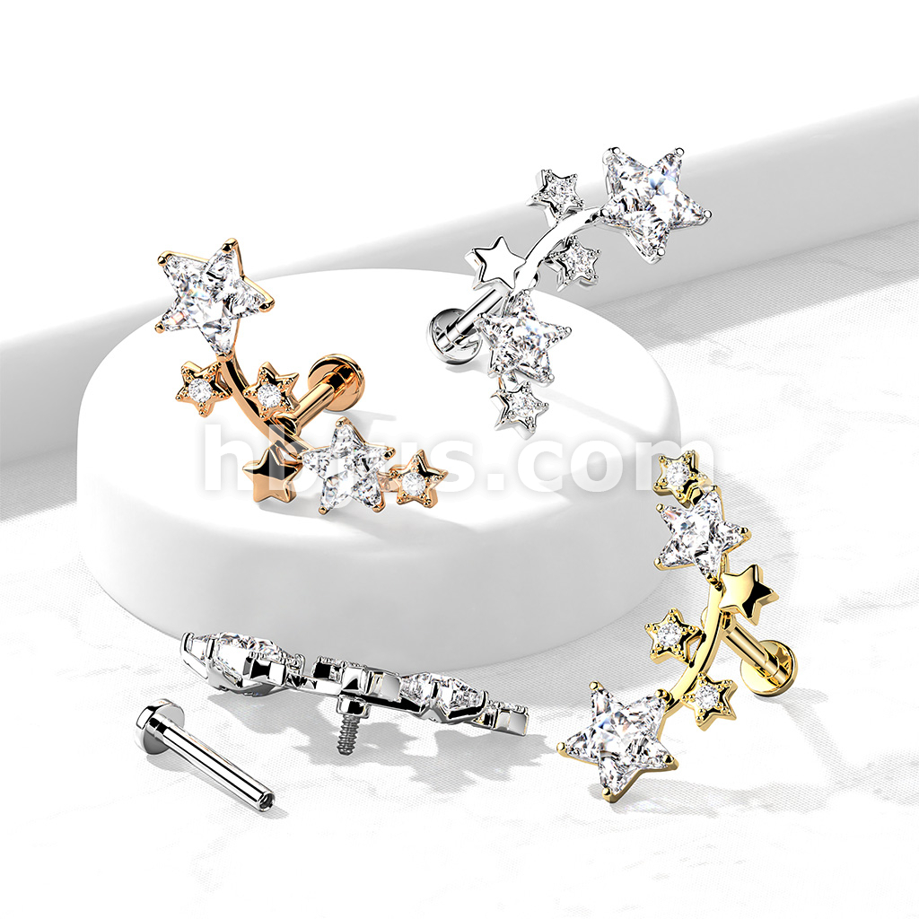 Multi Star CZ Vine Top Internally Threaded 316L Surgical Steel Flat Back Studs for Labret, Monroe, Cartilage and More