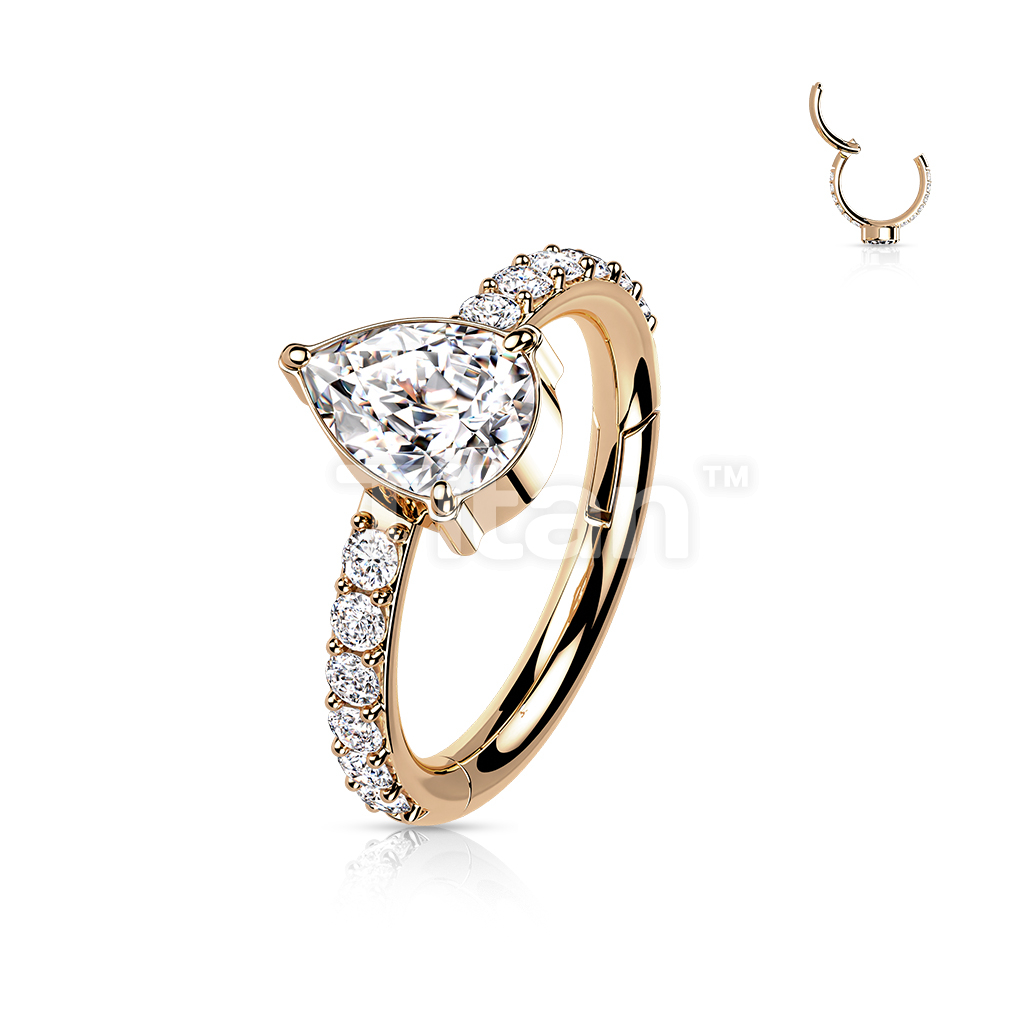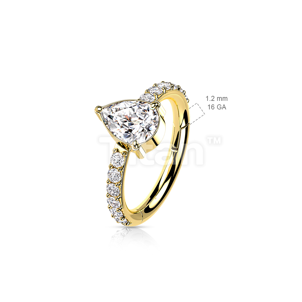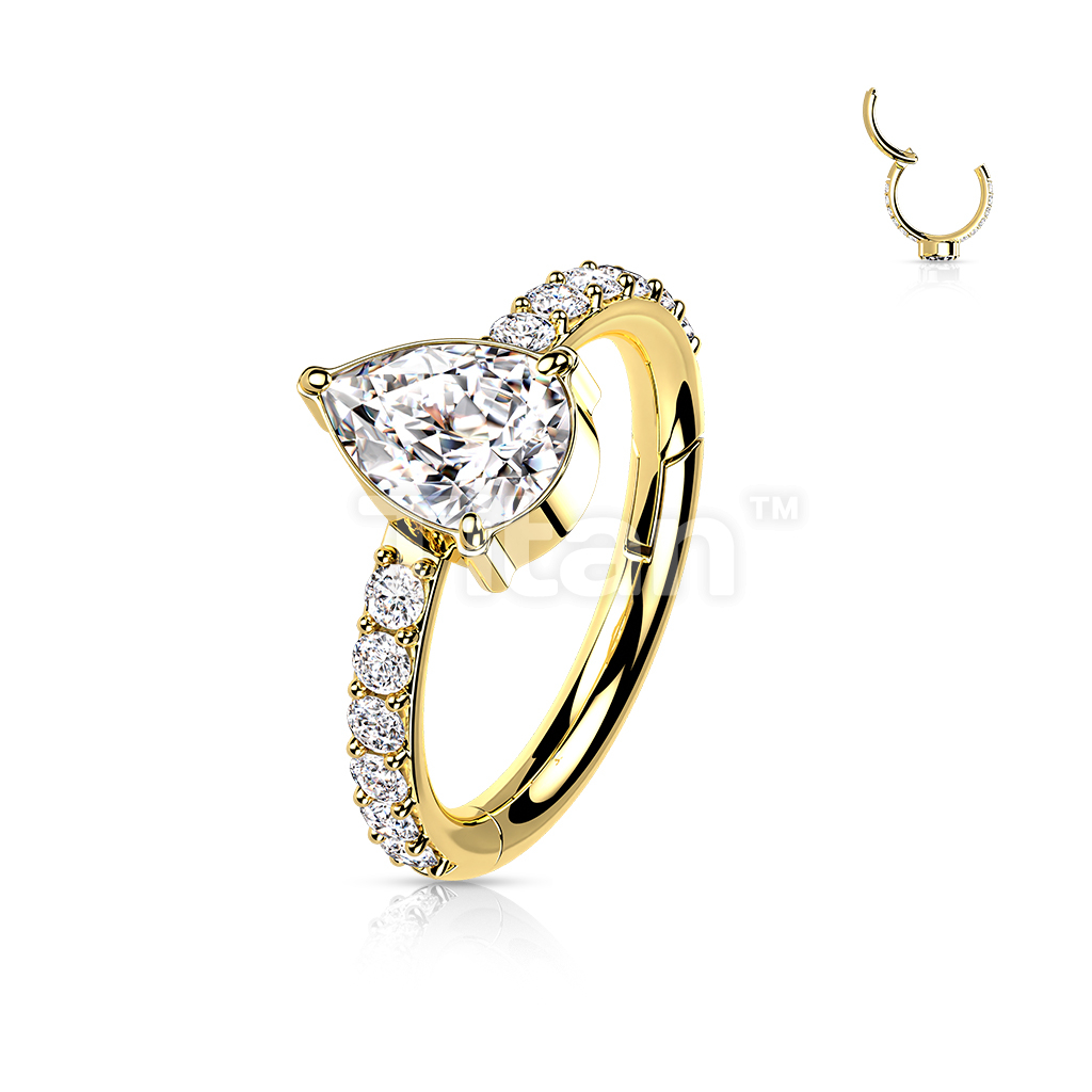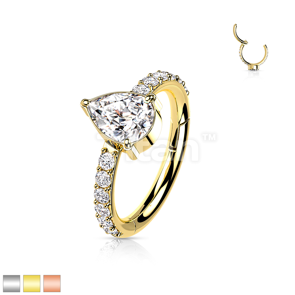 Implant Grade Titanium Hinged Segment Hoop Ring With Teardrop CZ Center and Pave CZ Sides