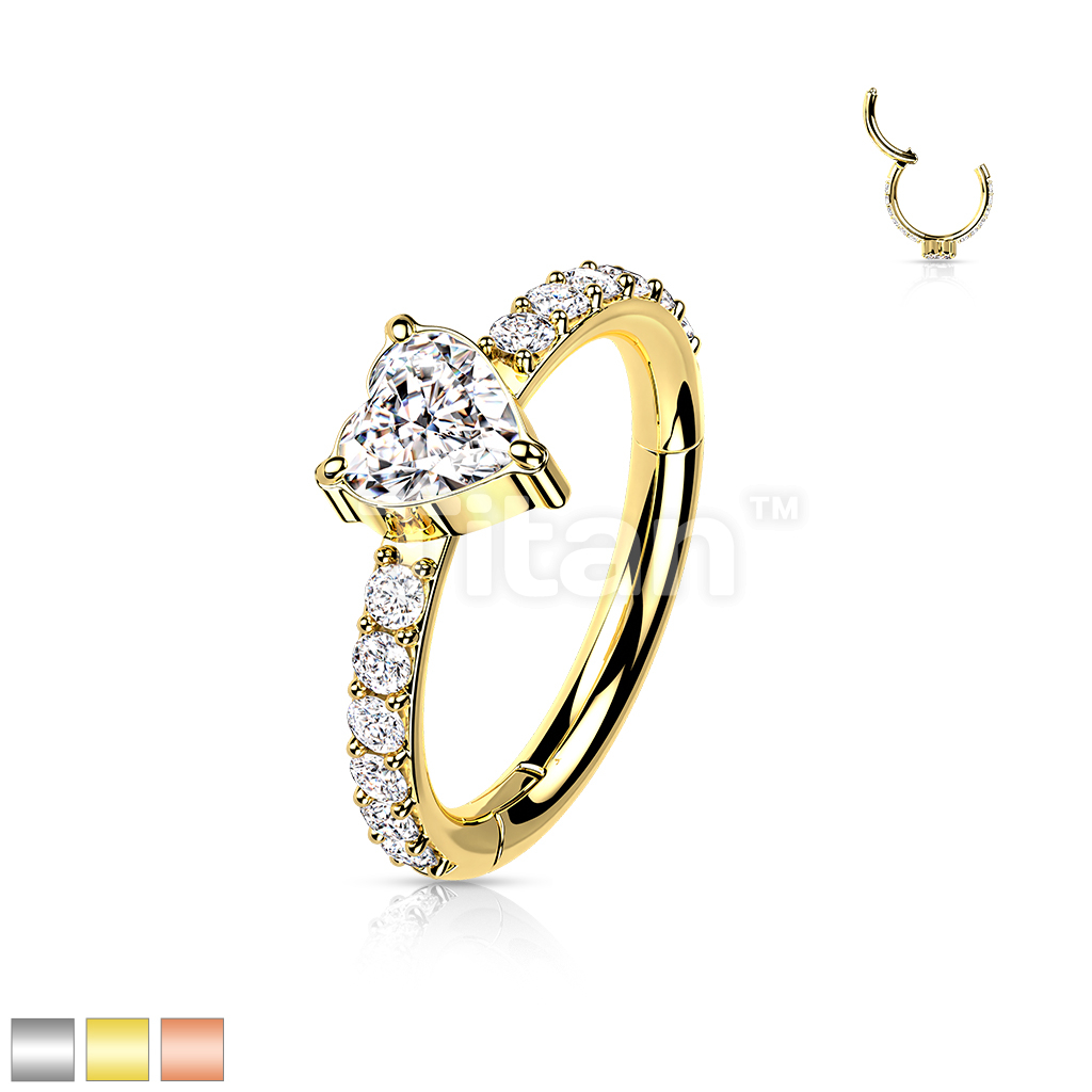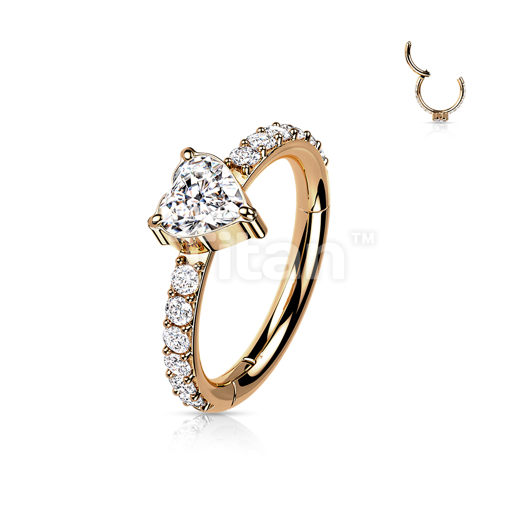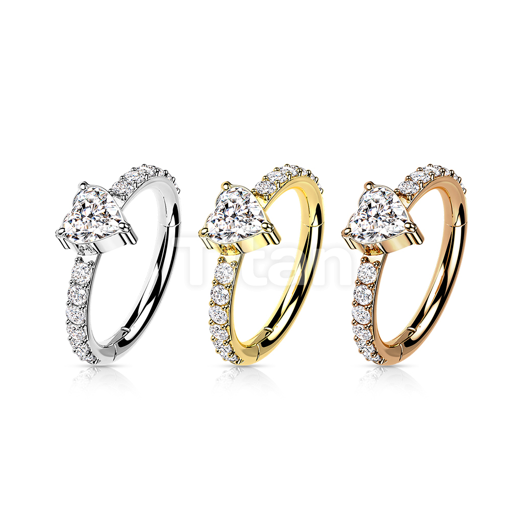 Implant Grade Titanium Hinged Segment Hoop Ring With CZ Heart Center and Pave CZ Sides
