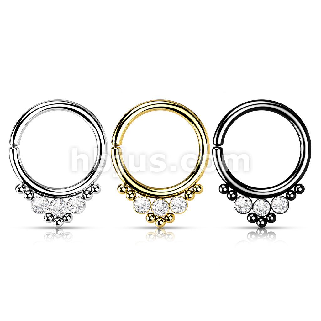 3 CZ Round Flat Ball with Cluster Bead All 316L Surgical Steel Bendable Hoop Ring for Cartilage, Nose Septum and More