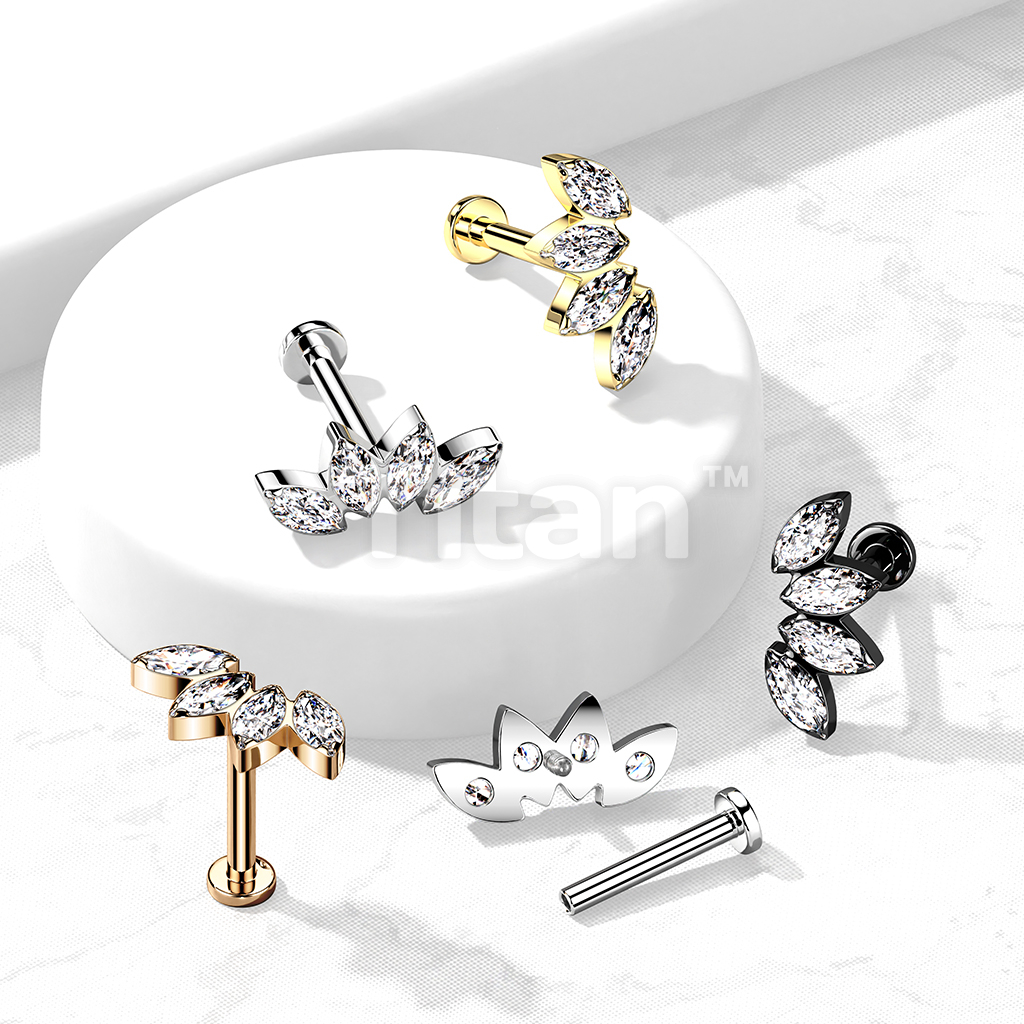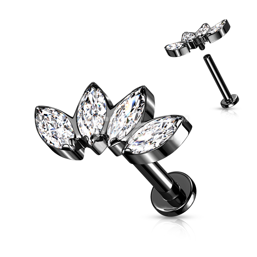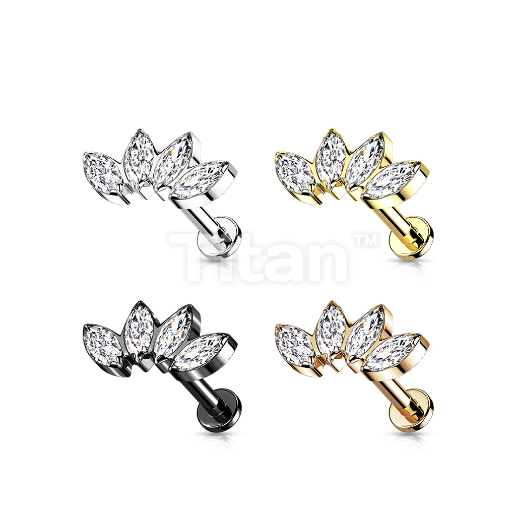 Implant Grade Titanium Internally Threaded Labret With 4 Marquise CZ Fan Top