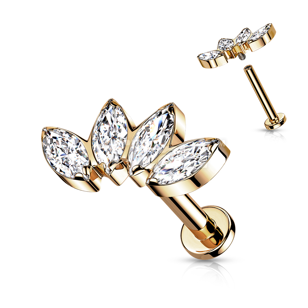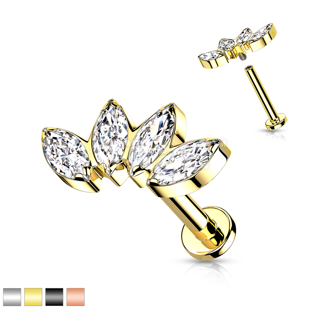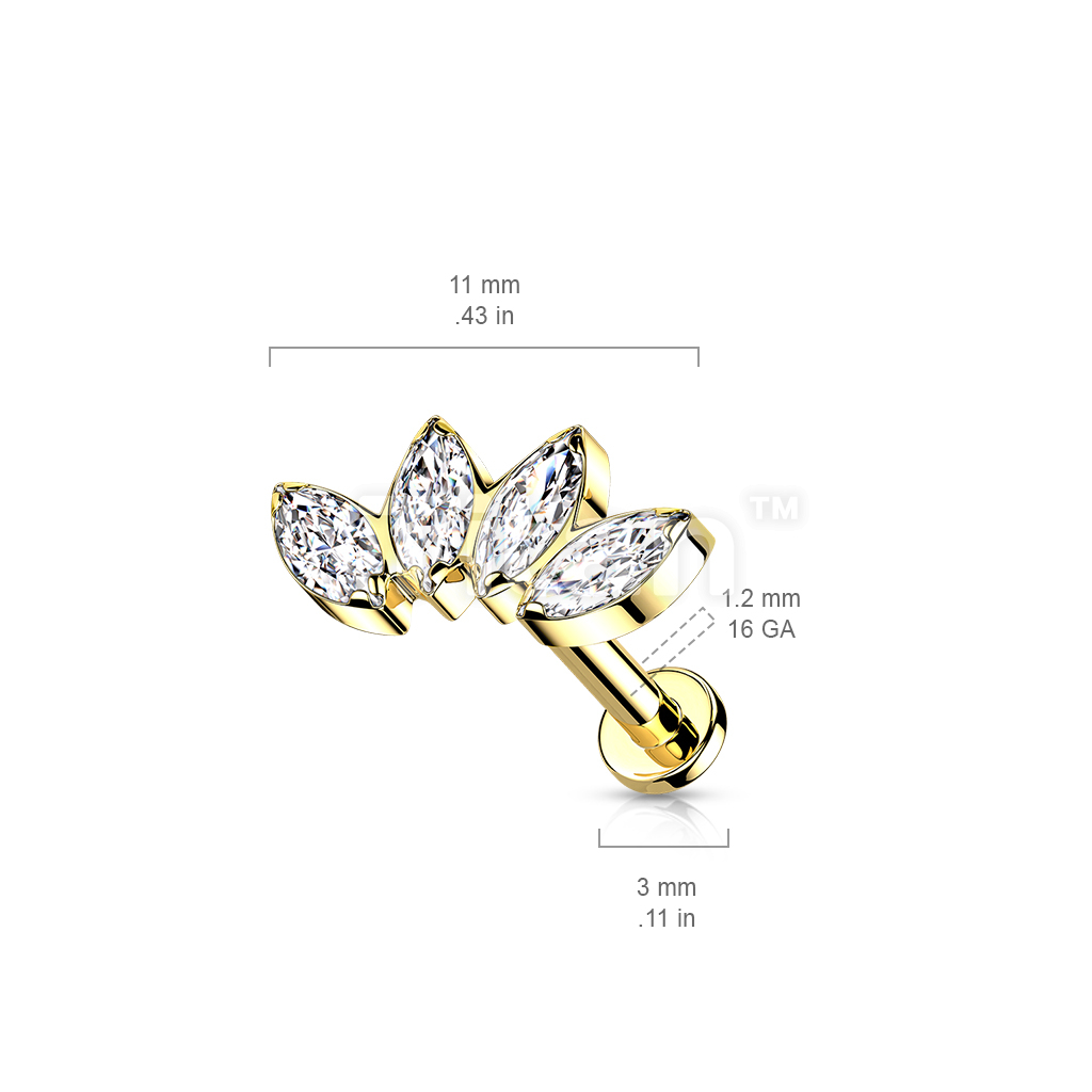 Implant Grade Titanium Internally Threaded Labret With 4 Marquise CZ Fan Top