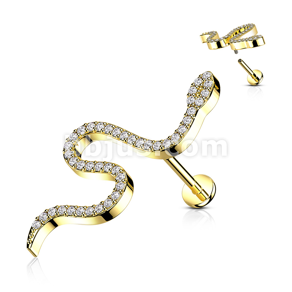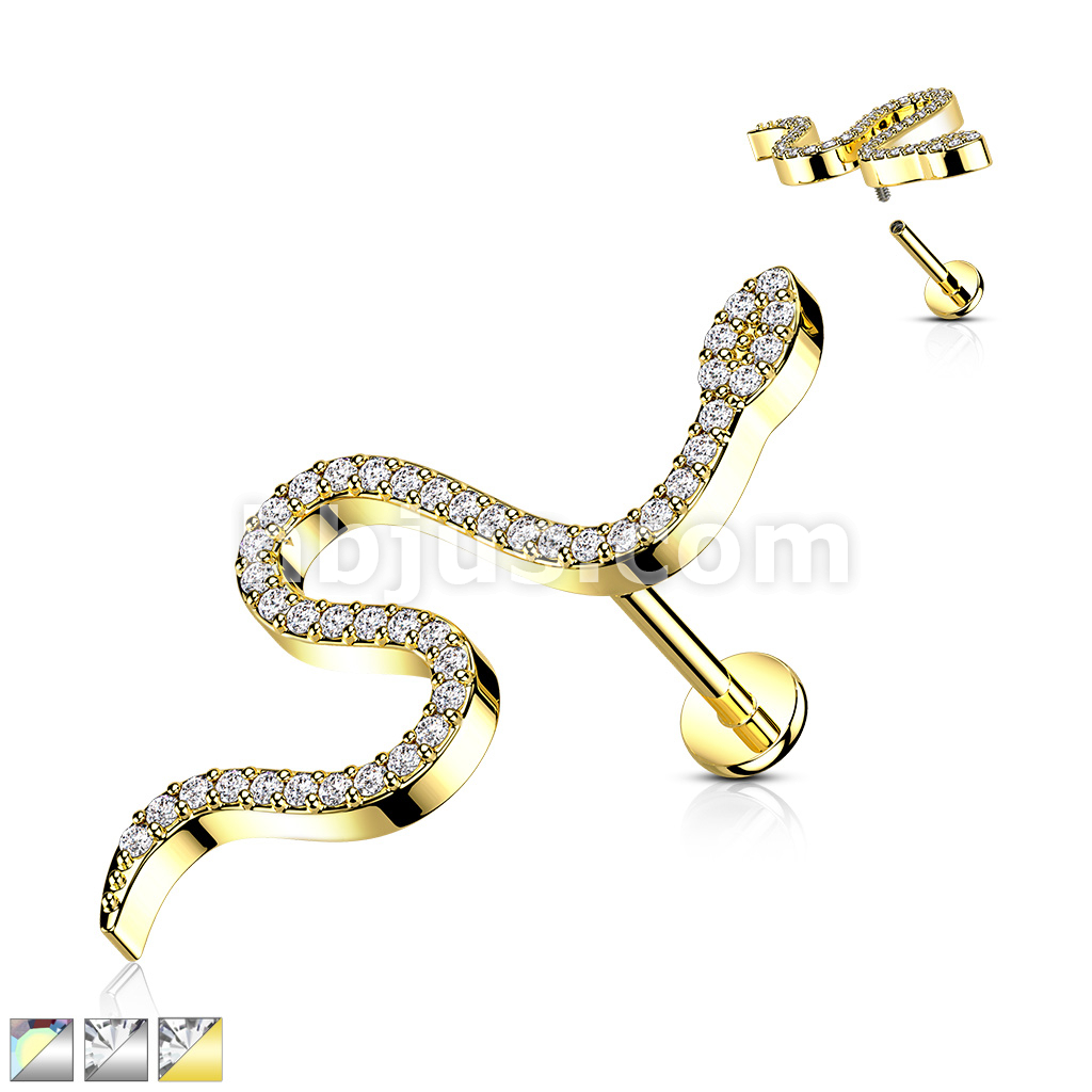 CZ Paved Snake Top on Internally Threaded 316L Surgical Steel Flat Back Studs for Labret, Monroe, Cartilage and More