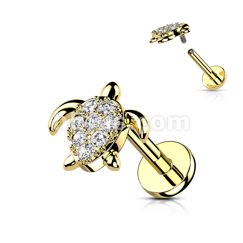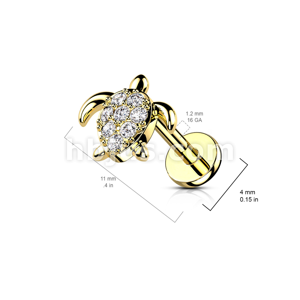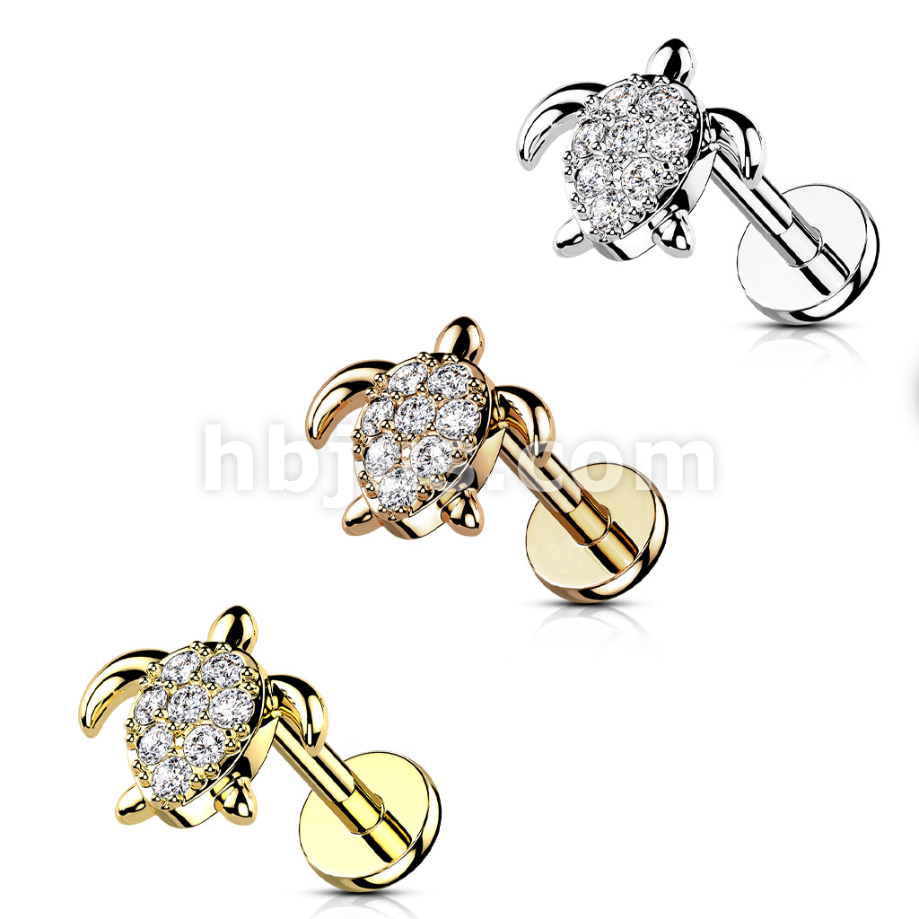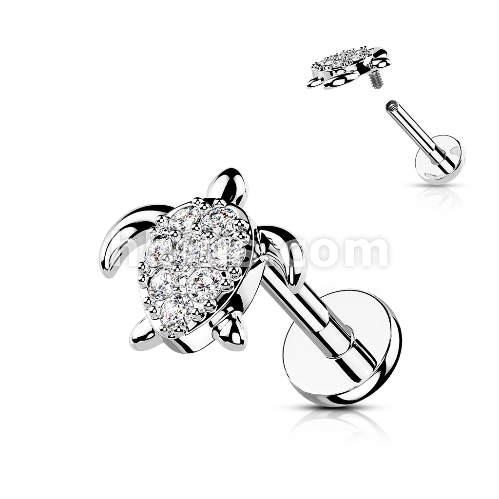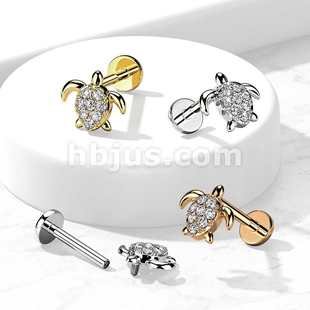 CZ Paved Turtle Internally Threaded 316L Surgical Steel Flat Back Studs for Labret, Monroe, Cartilage and More