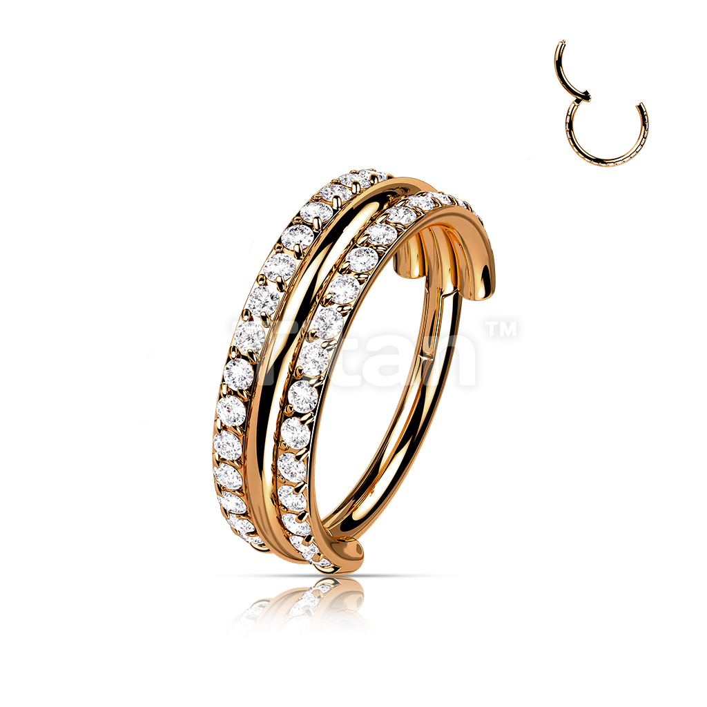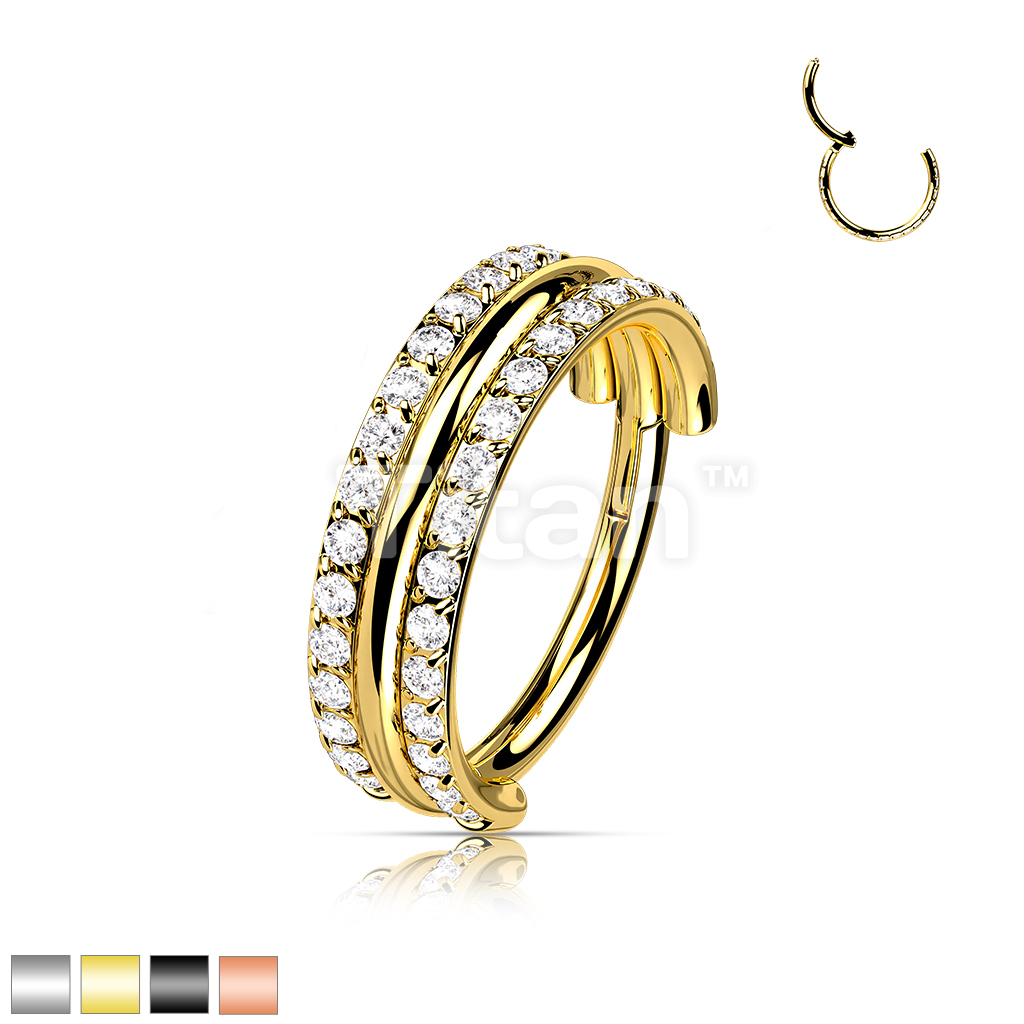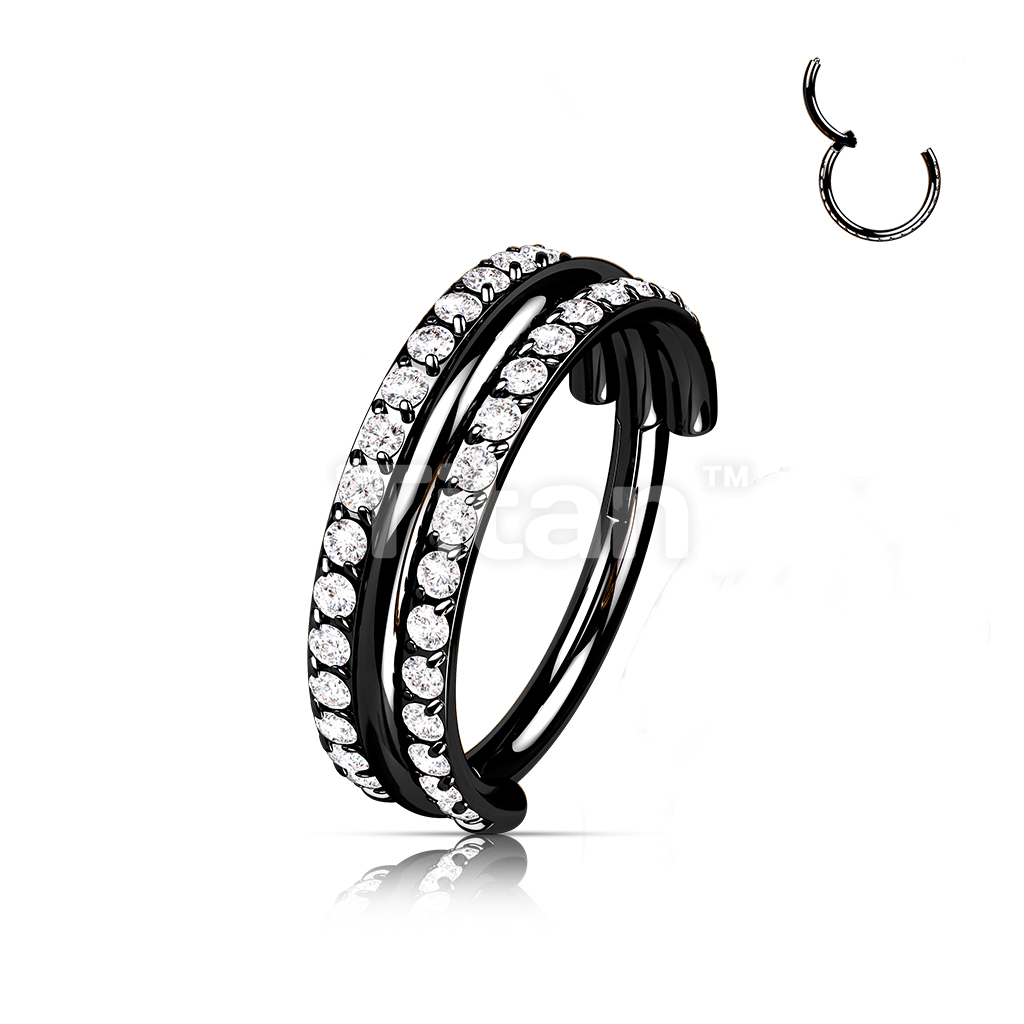 Implant Grade Titanium Hinged Segment Hoop Ring With Outward Facing Triple Stacked Double CZ Line