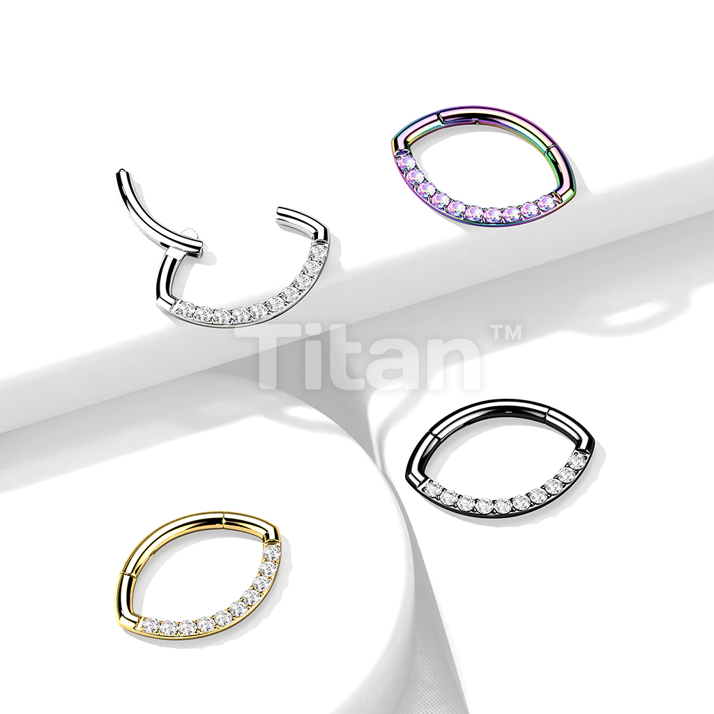 Implant Grade Titanium CZ Lined Oval Hinged Segment Hoop Ring