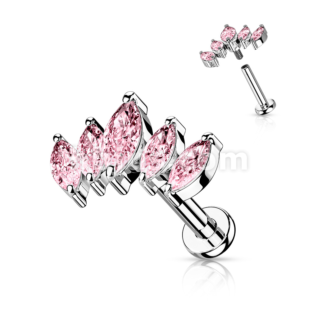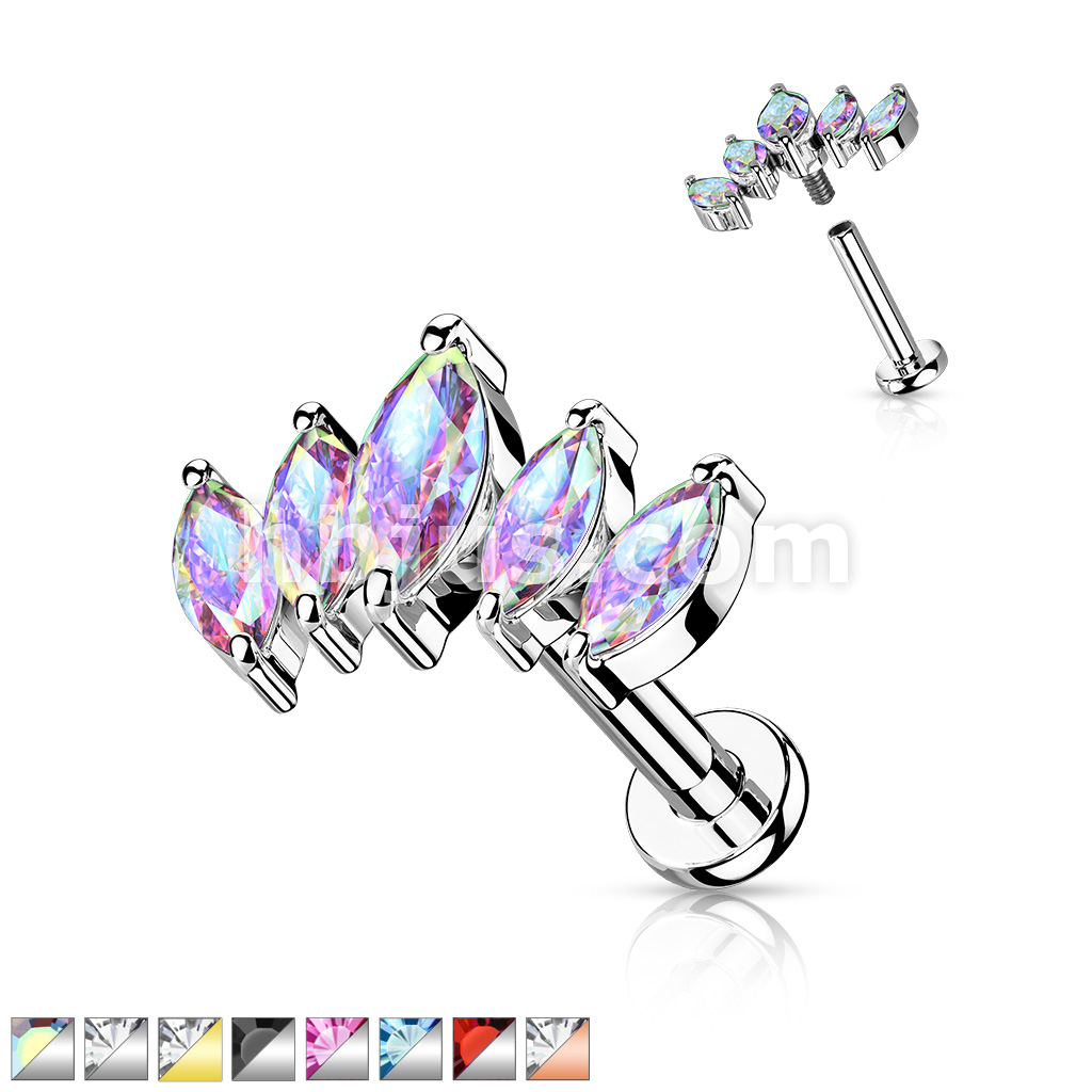 5 Marquise CZ Fan Set Top With Internally Threaded 316L Surgical Steel Flat Back Studs for Labret, Monroe, Cartilage and More