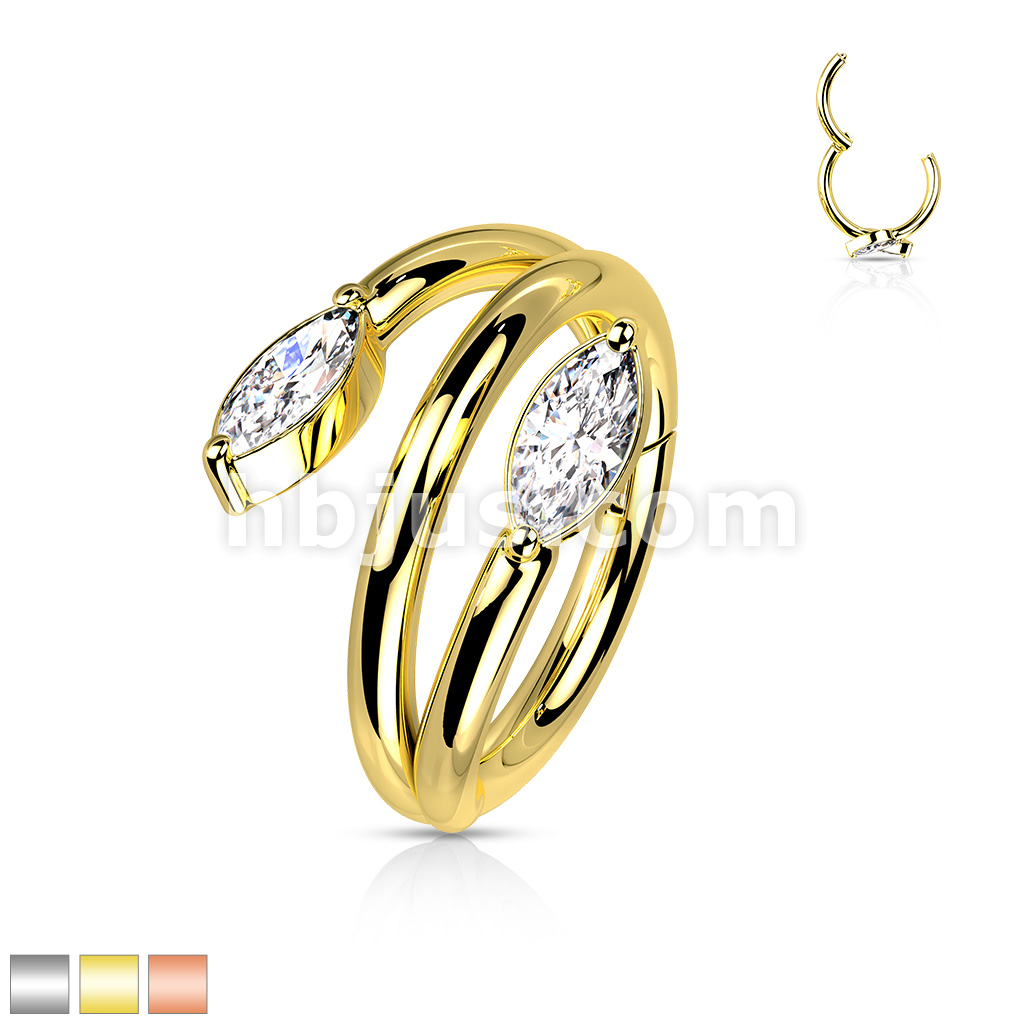 High Quality Precision All 316L Surgical Steel Hinged Segment with Double Vine Marquise CZ Ends