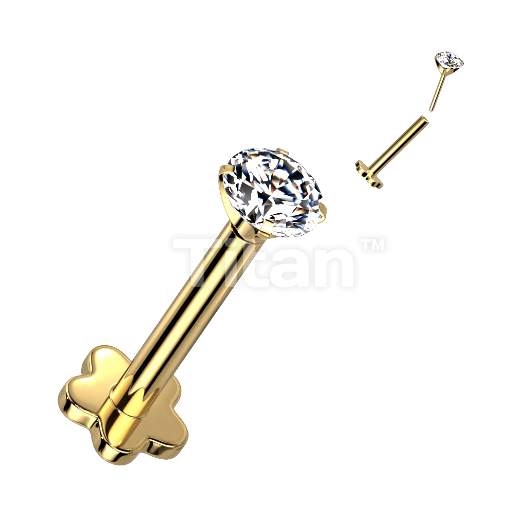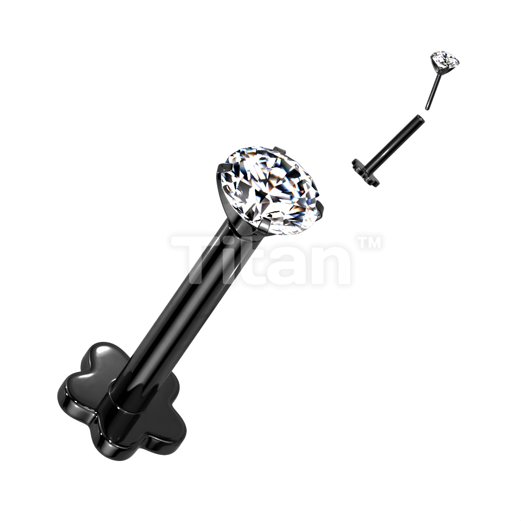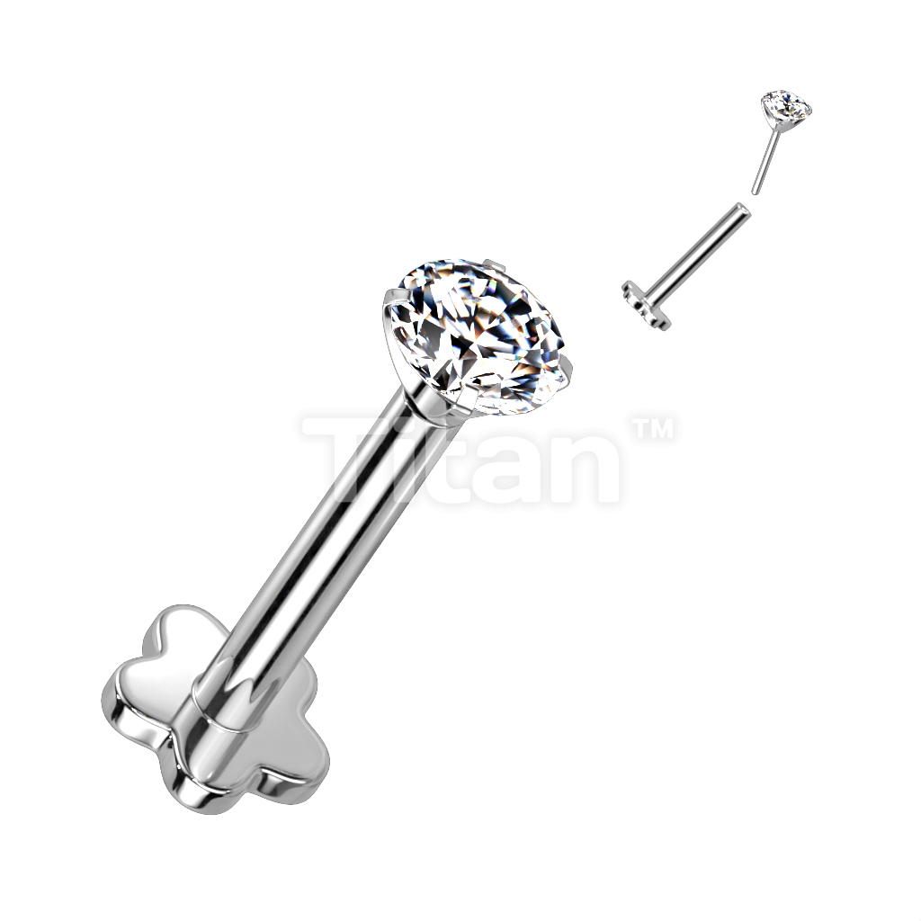 Implant Grade Titanium Threadless Push in Flower Base Labret With Prong Set CZ Top