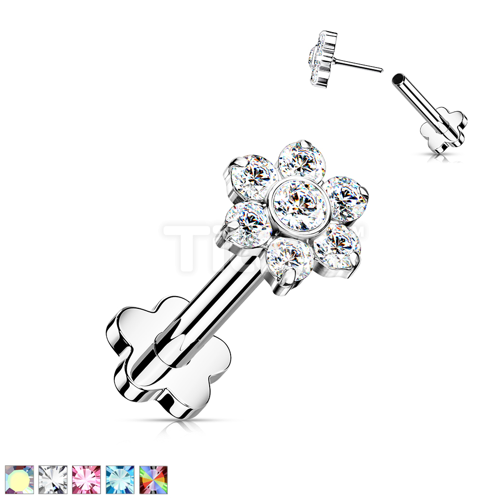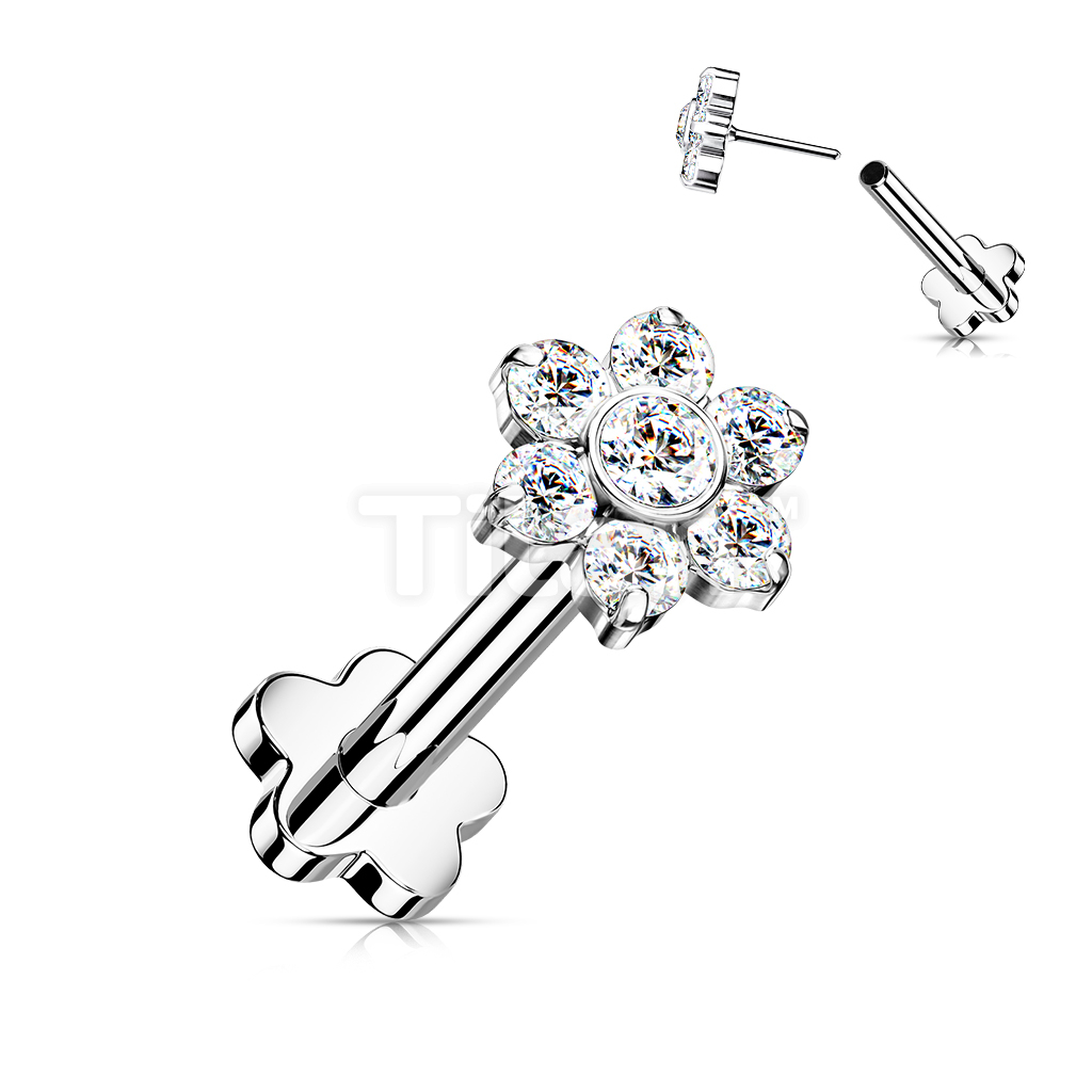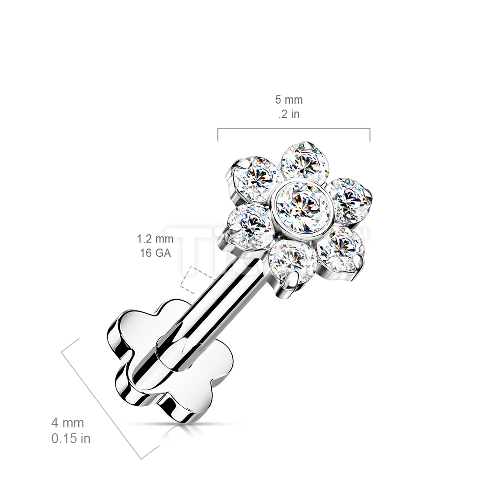 Implant Grade Titanium Threadless Push in Flower Base Labret With CZ Flower Top