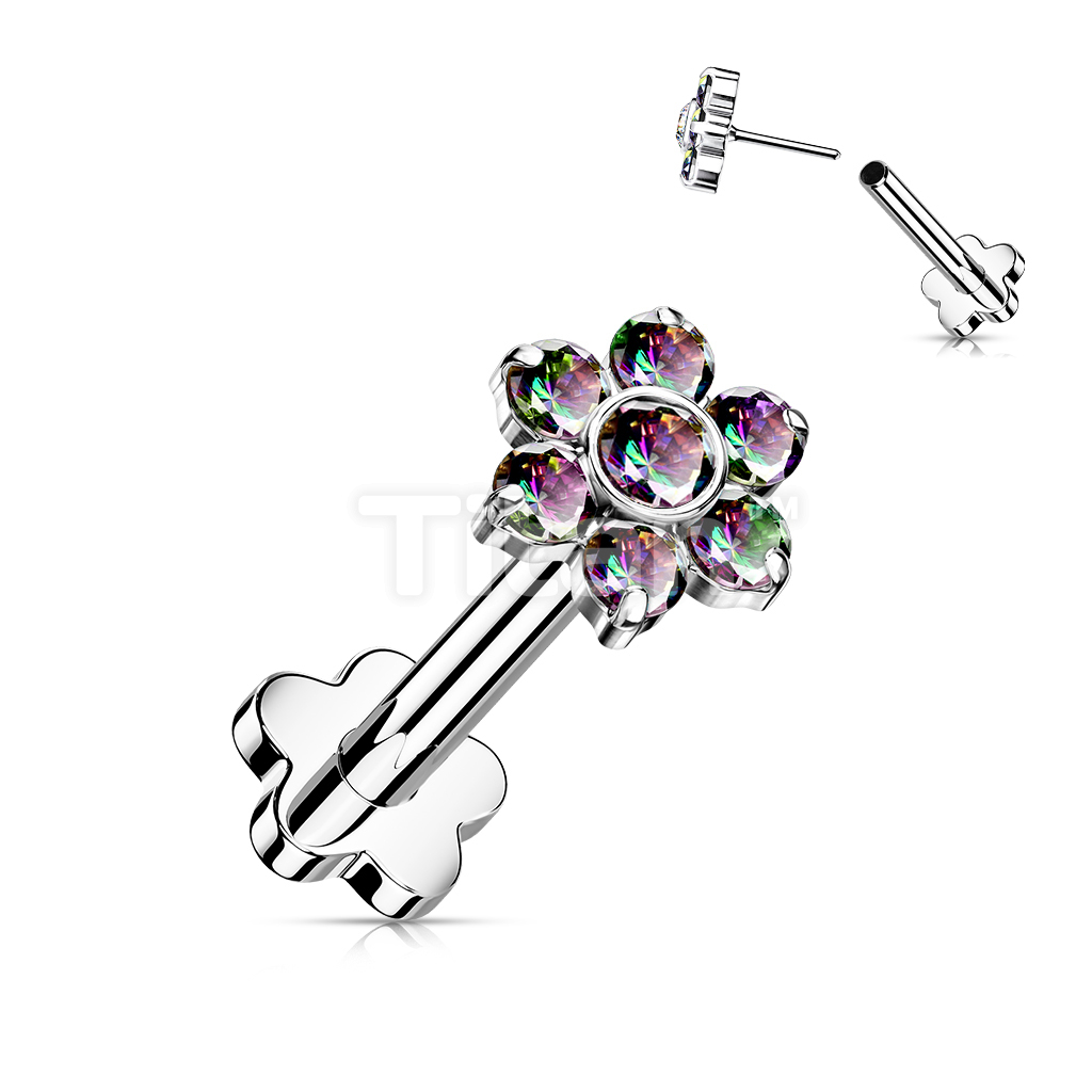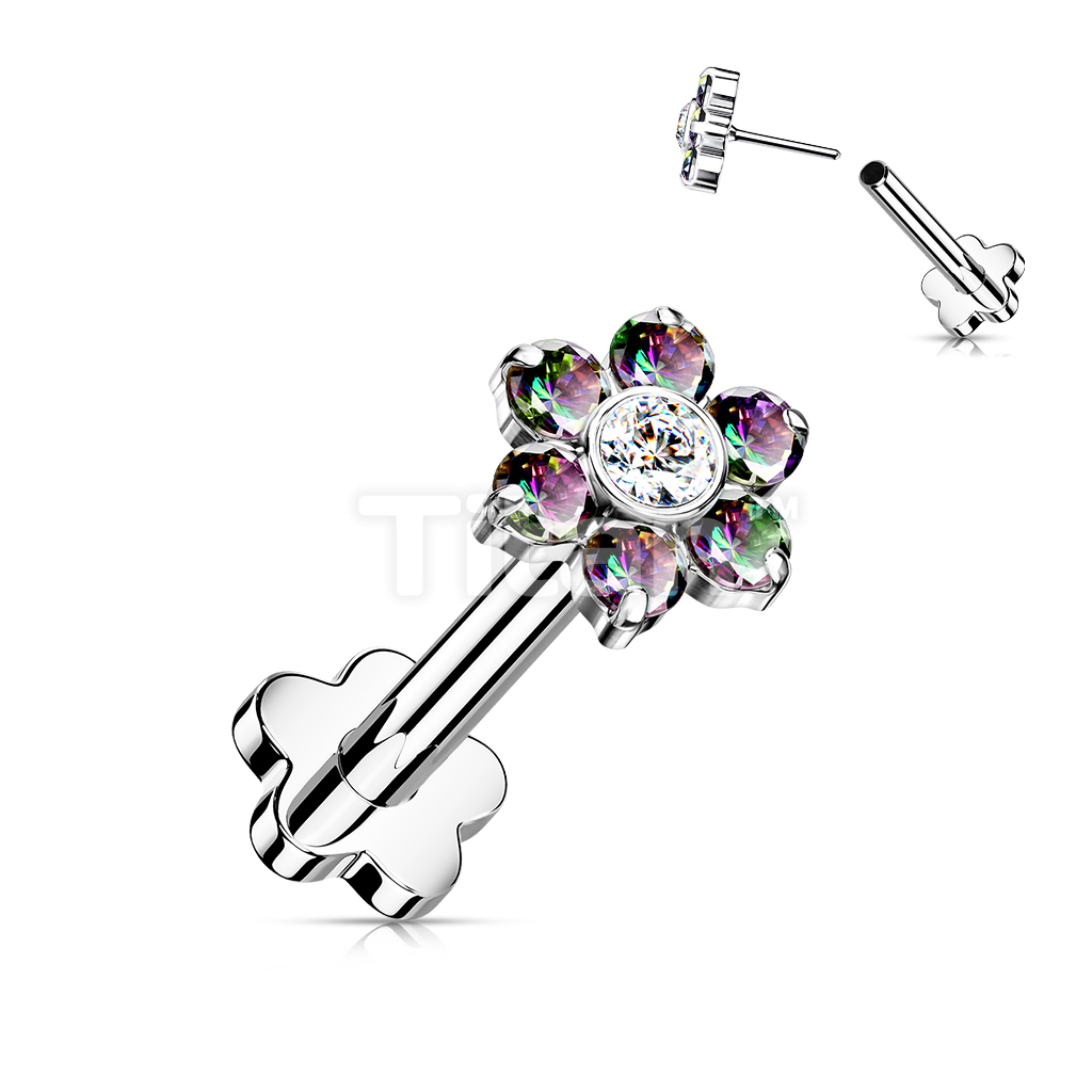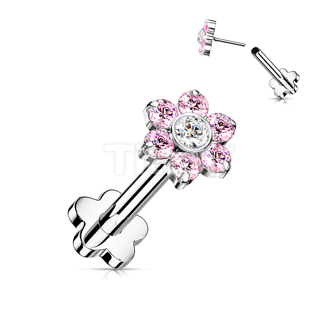 Implant Grade Titanium Threadless Push in Flower Base Labret With CZ Flower Top