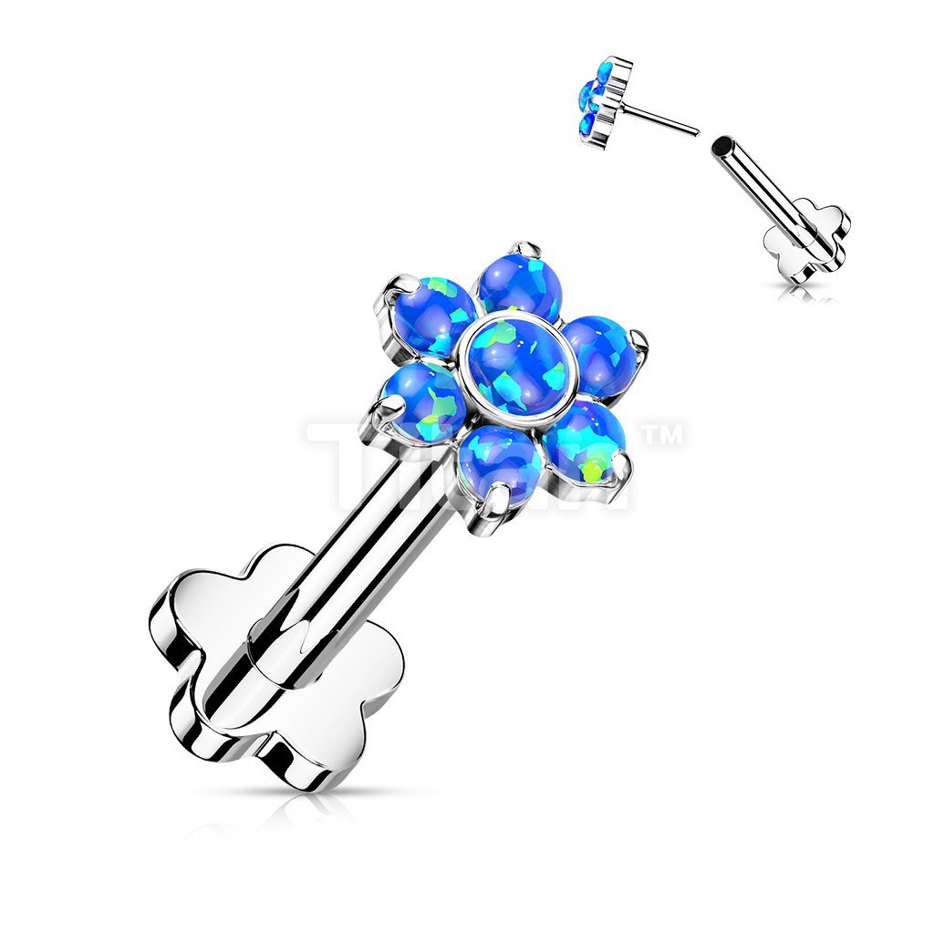Implant Grade Titanium Threadless Push in Flower Base Labret With Opal Flower Top