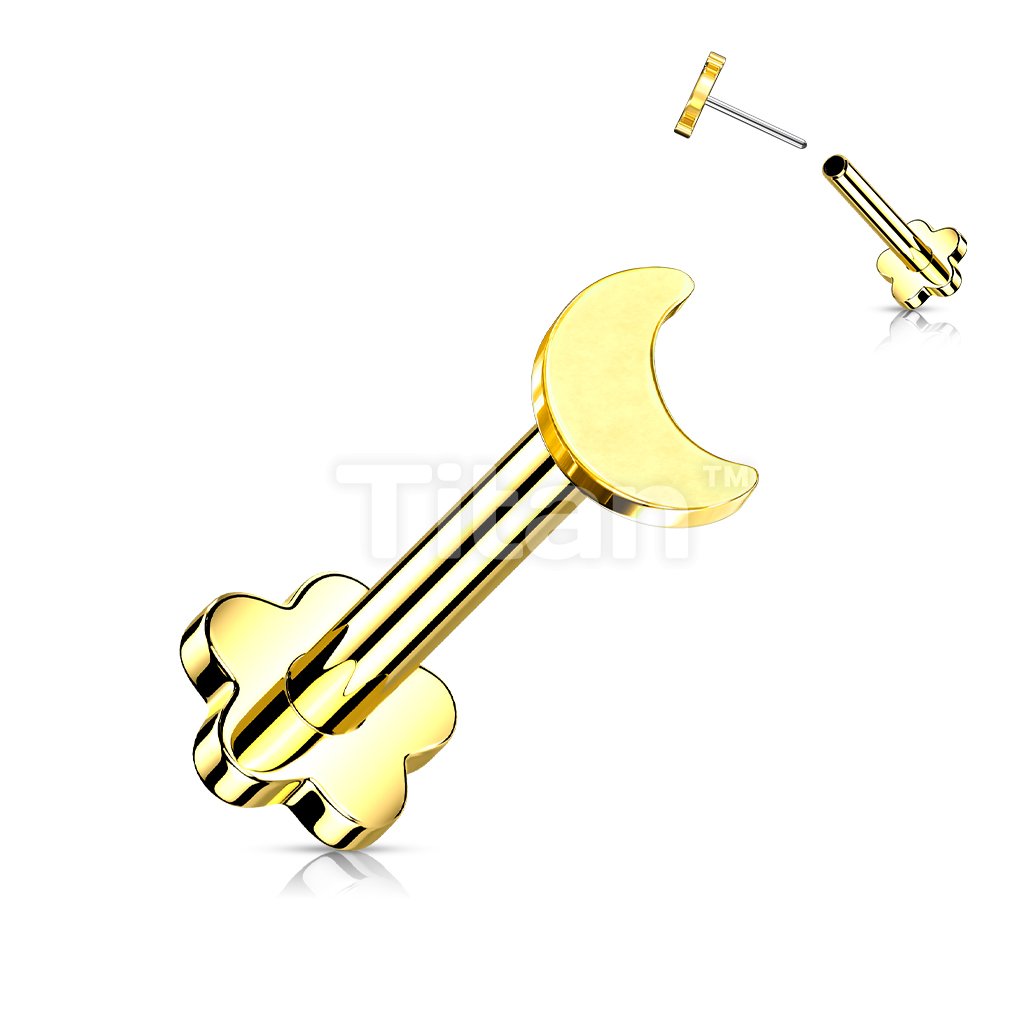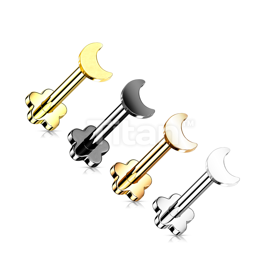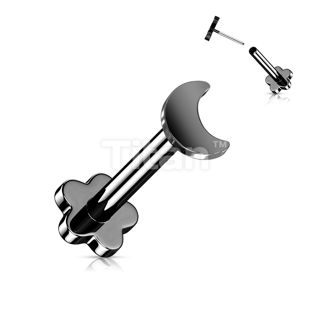 Implant Grade Titanium Threadless Push in Flower Base Labret With Crescent Moon Shaped Top