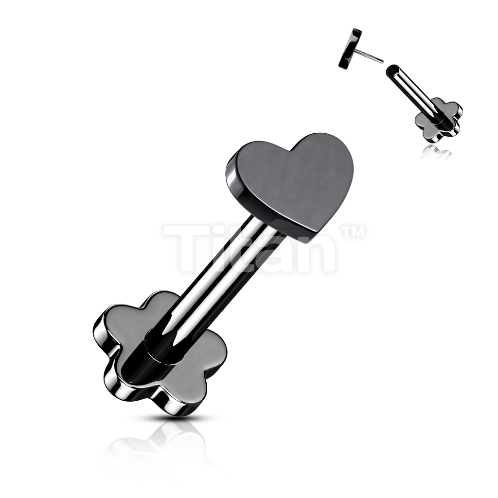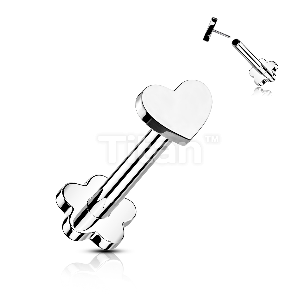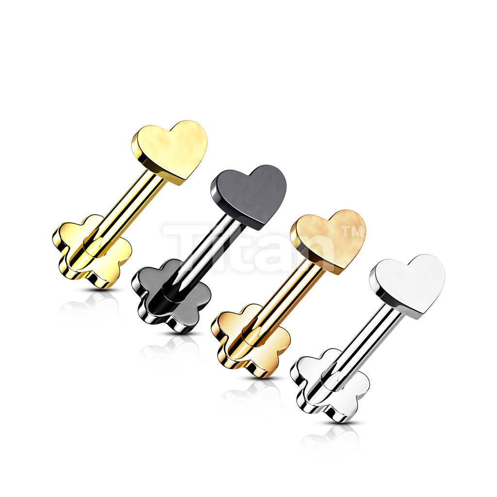 Implant Grade Titanium Threadless Push in Flower Base Labret With Heart Shaped Top
