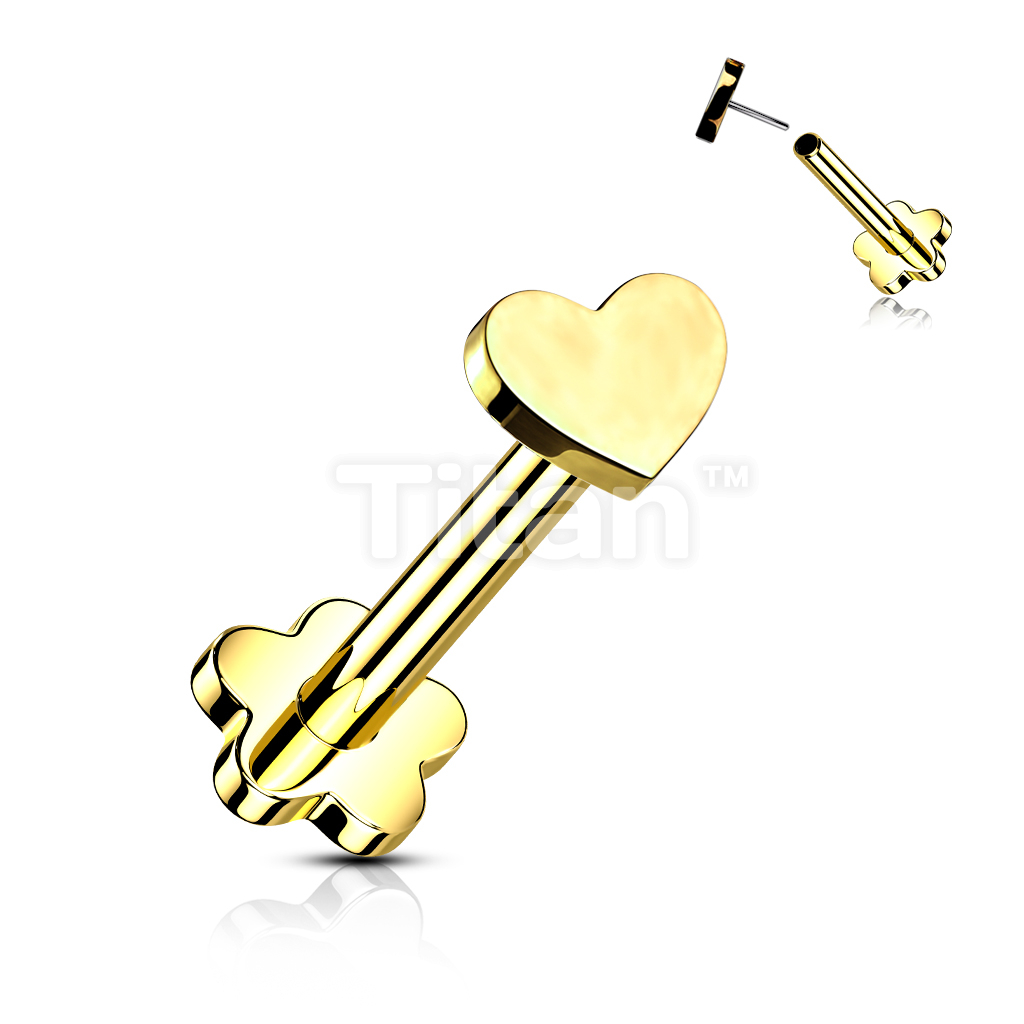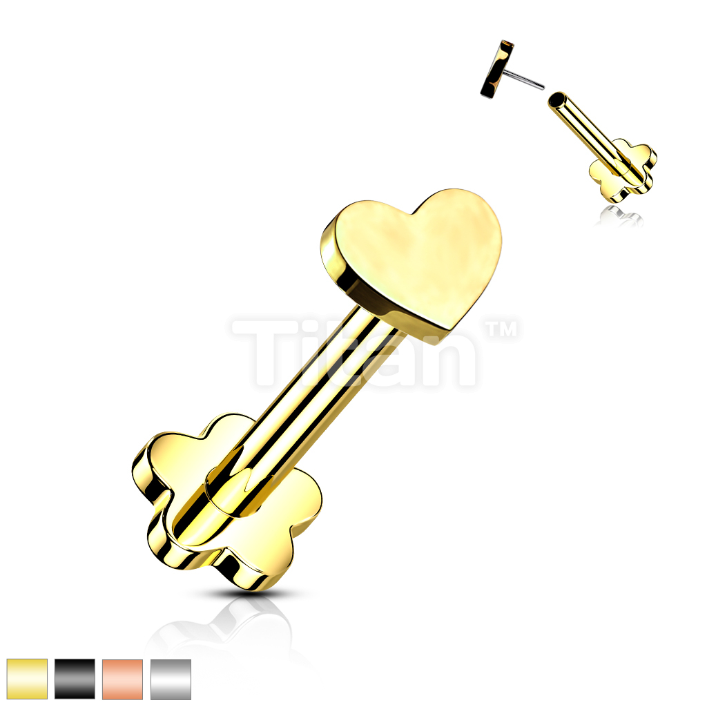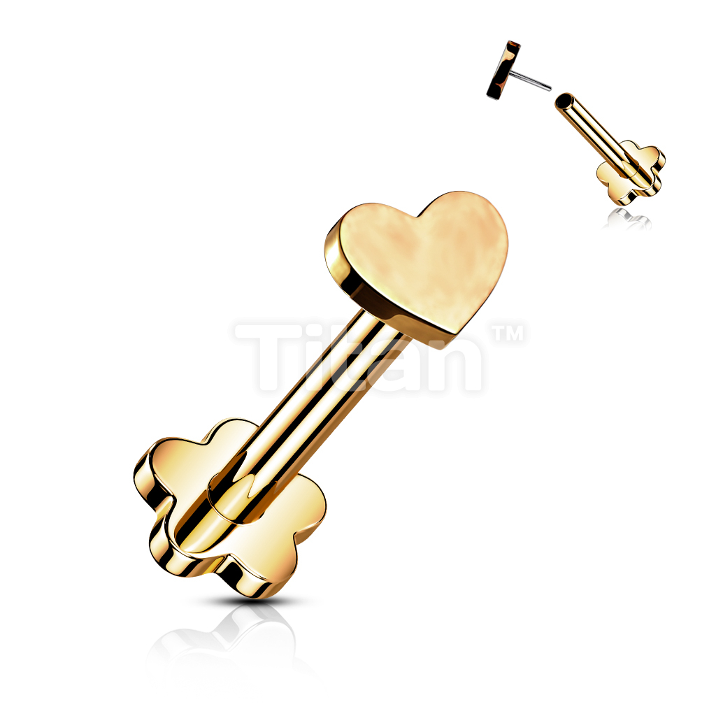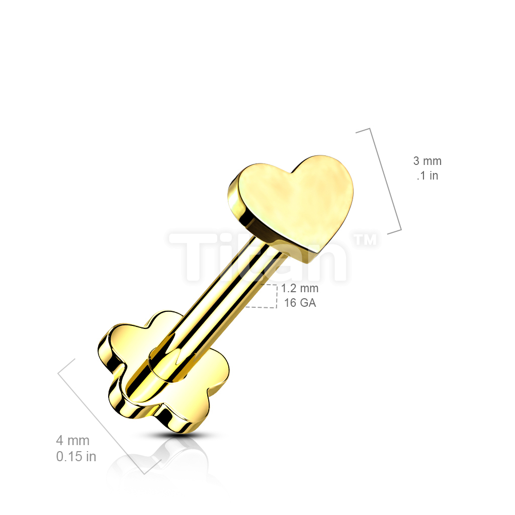 Implant Grade Titanium Threadless Push in Flower Base Labret With Heart Shaped Top