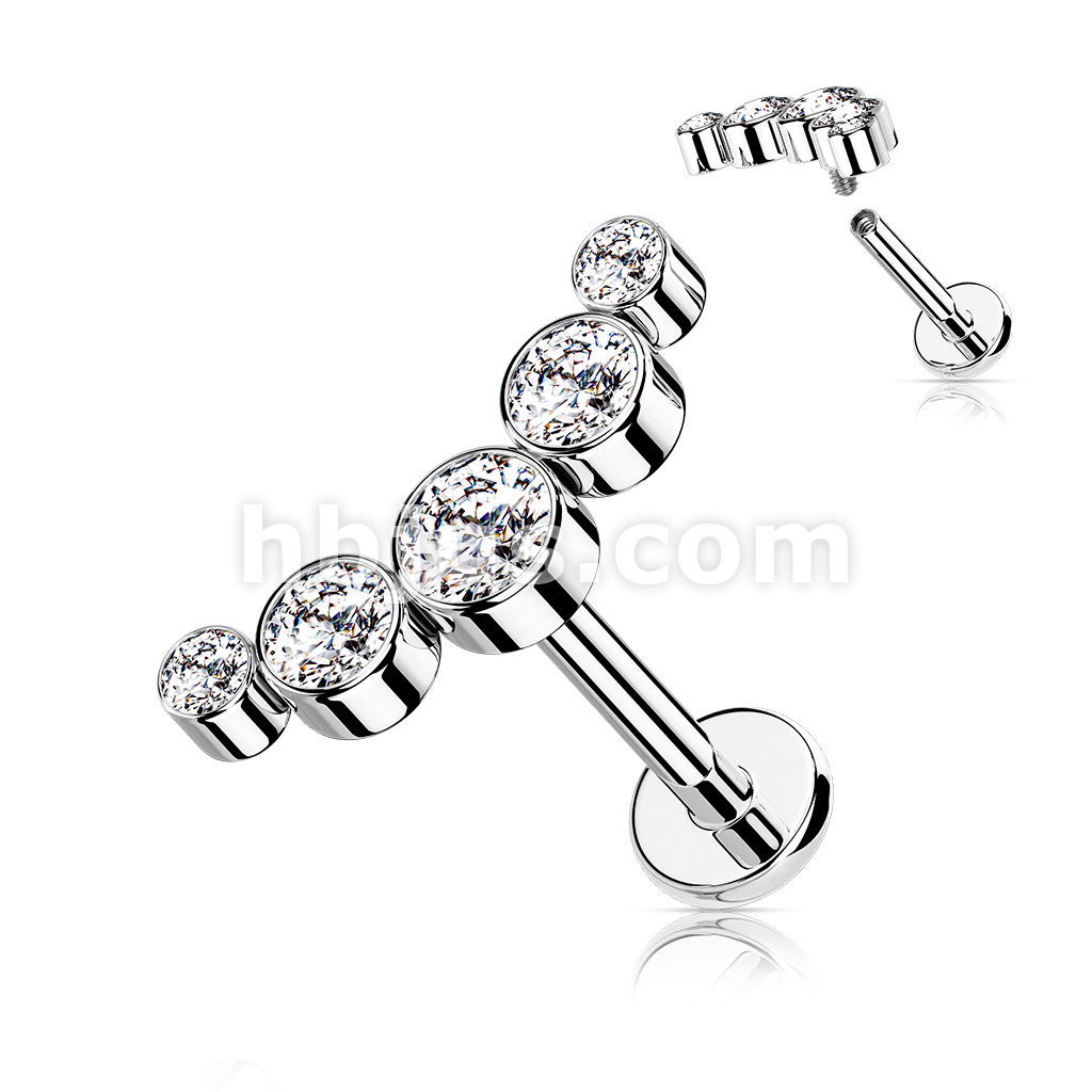5-Round CZ Bezel Set Curved Internally Threaded 316L Surgical Steel Flat Back Studs for Labret, Monroe, Cartilage and More