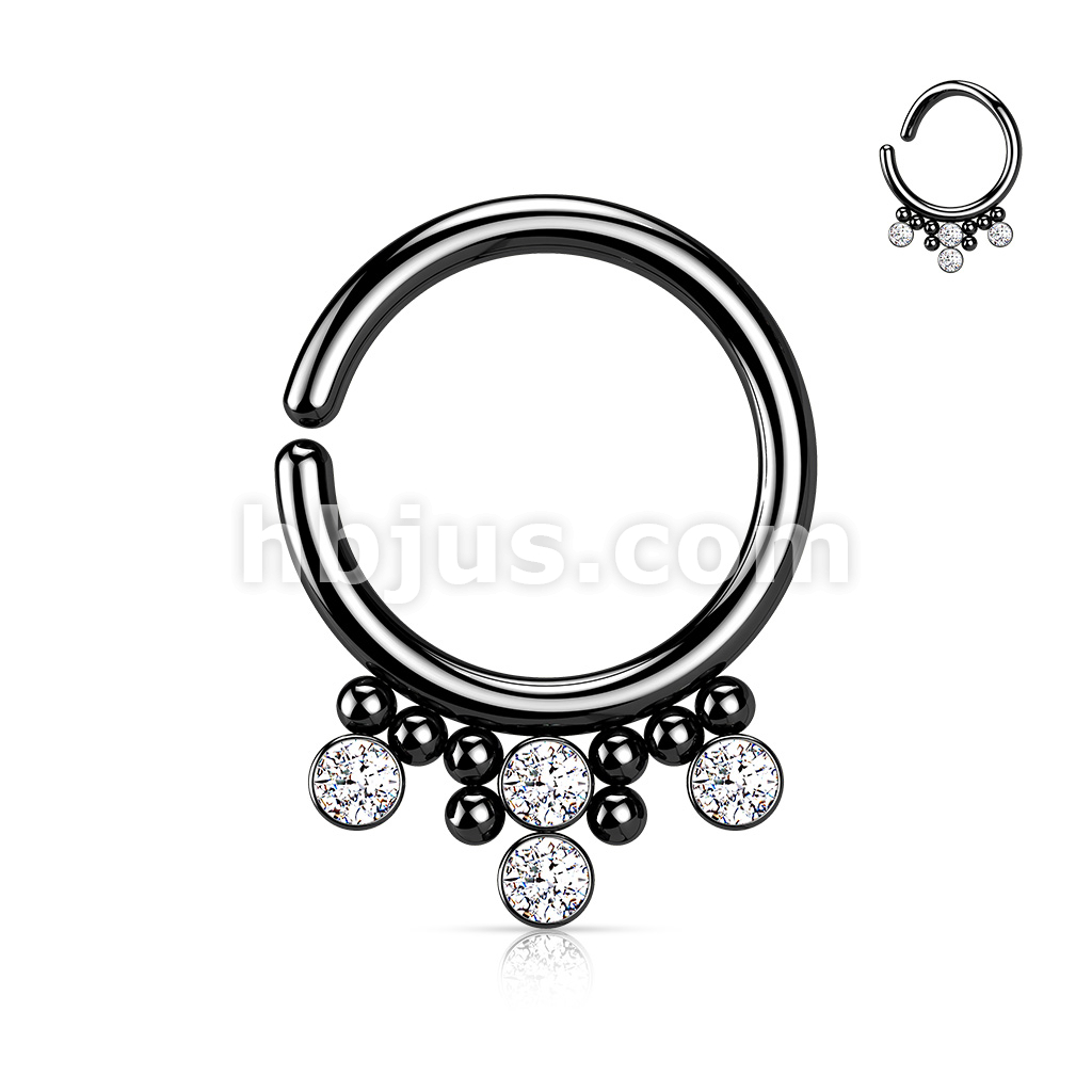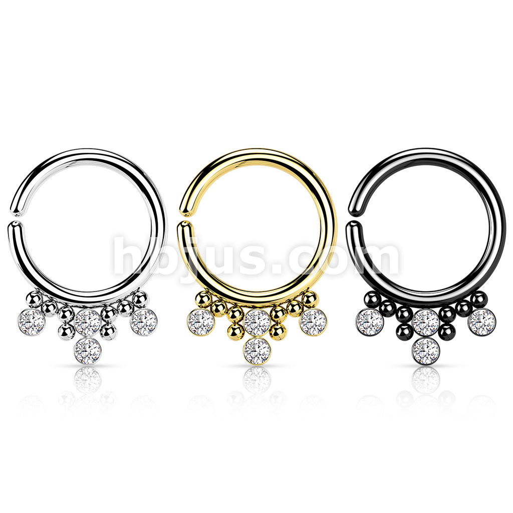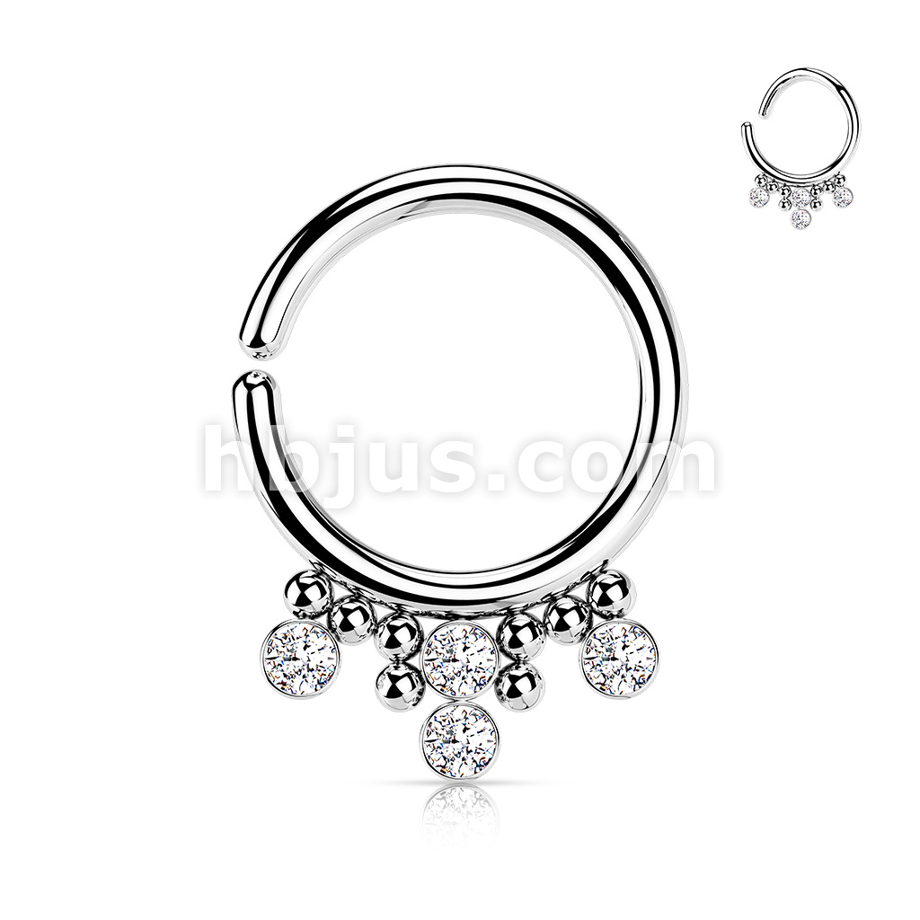 All 316L Surgical Steel Bendable Hoop Ring with 4 Round CZ Flat Balls and Clustered Beads