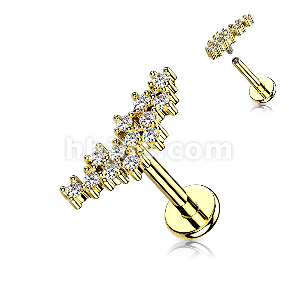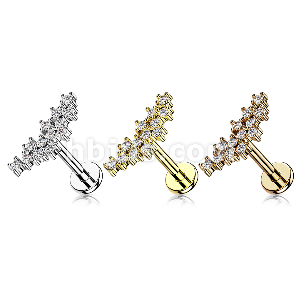 Cluster of Prong Set CZ Top on Internally Threaded 316L Surgical Steel Flat Back Stud for Labret, Monroe, Cartilage and More