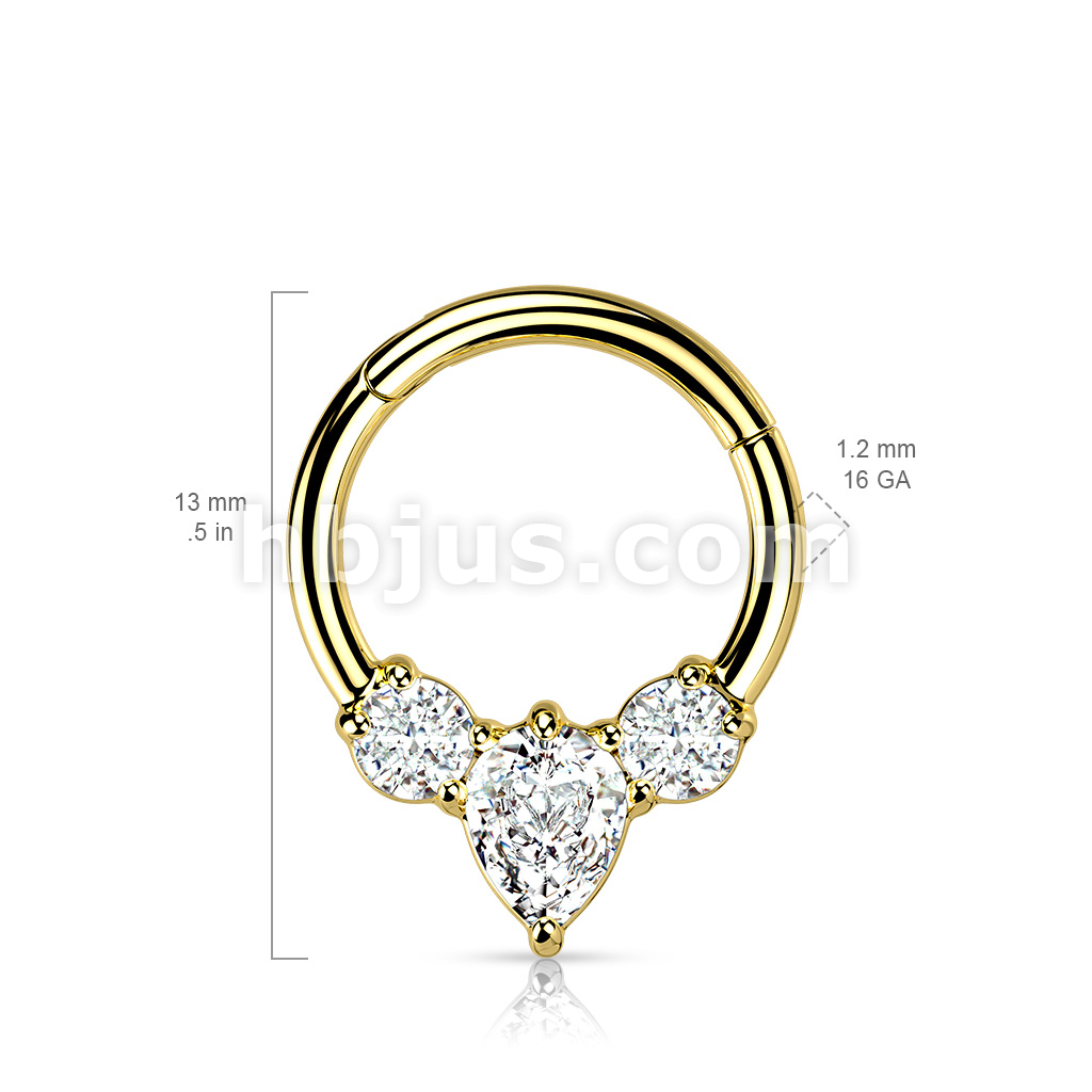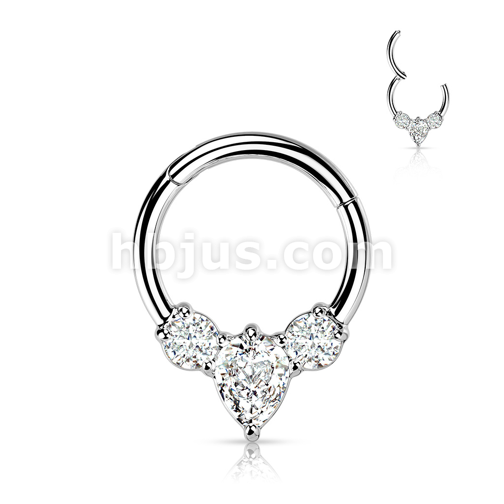 High Quality Precision All 316L Surgical Steel Hinged Segment with Pear CZ between 2 Round CZ