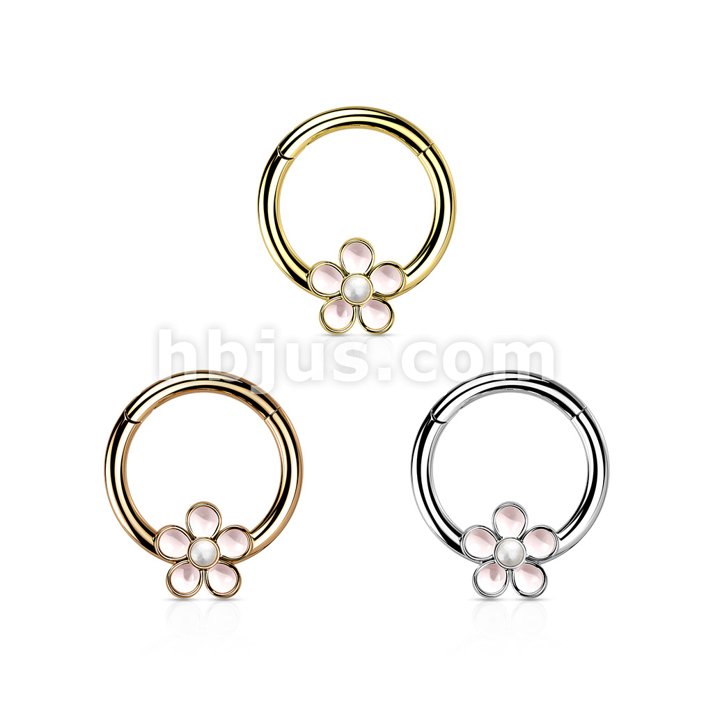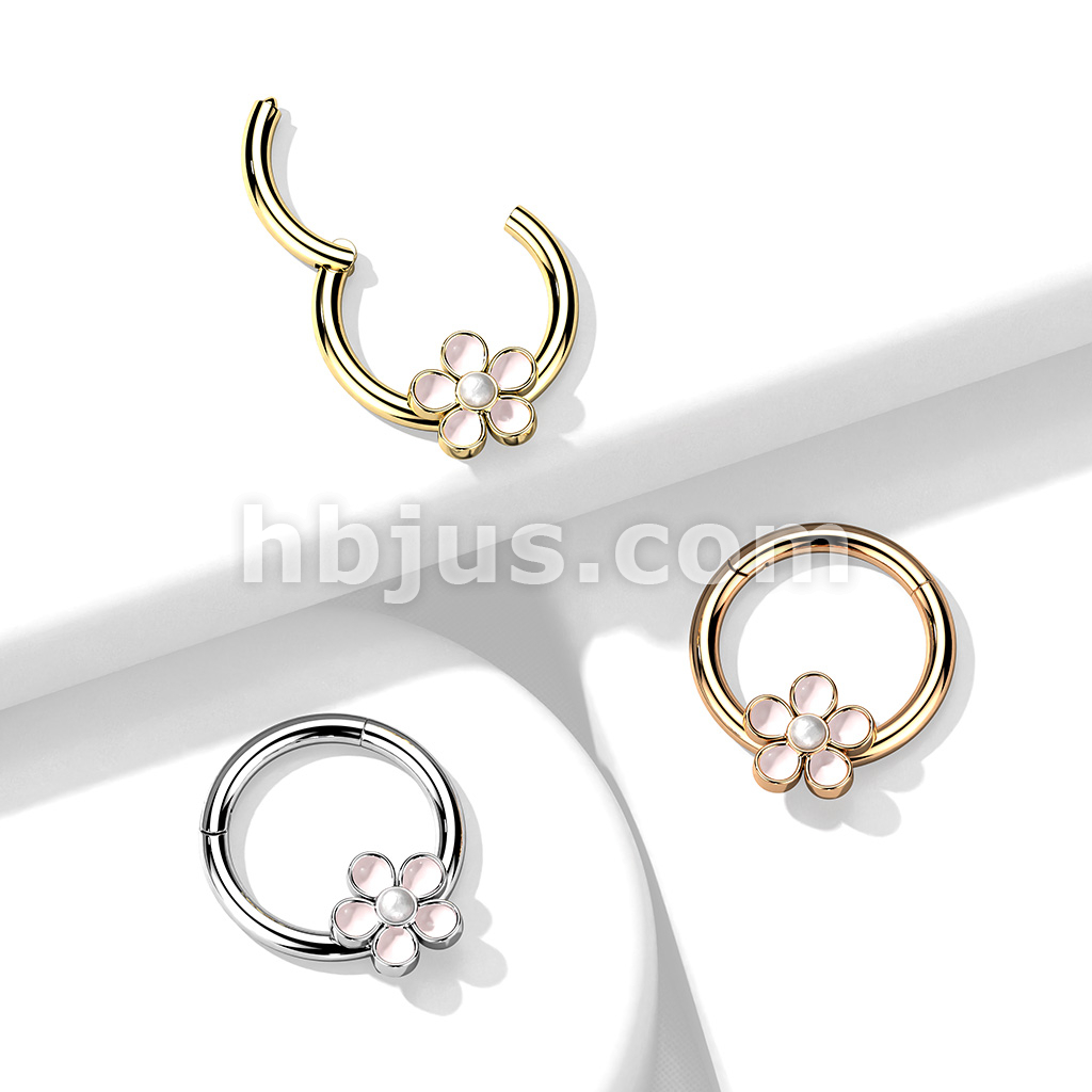 High Quality Precision 316L Surgical Steel Hinged Segment Ring with Enamel Flower