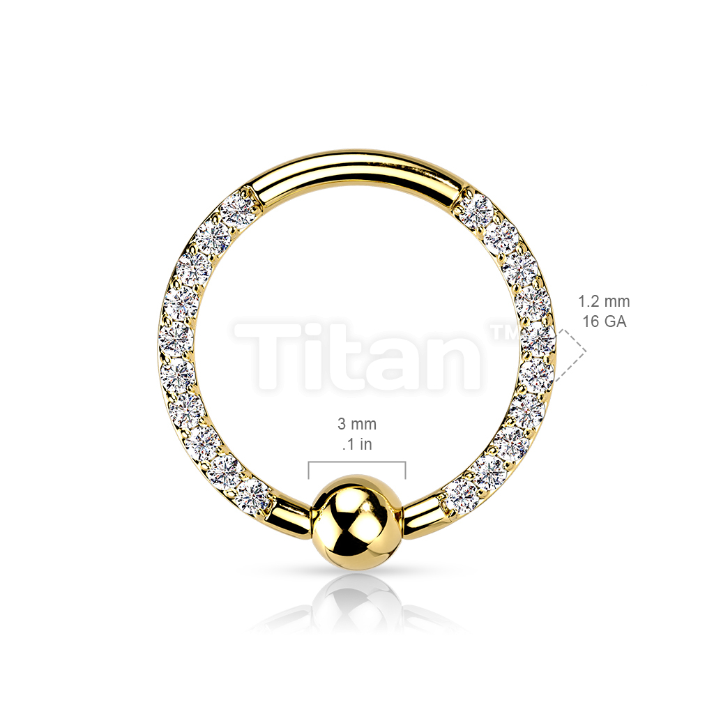 Implant Grade Titanium Captive Bead Ring With Forward Facing Pave CZs on Each Side