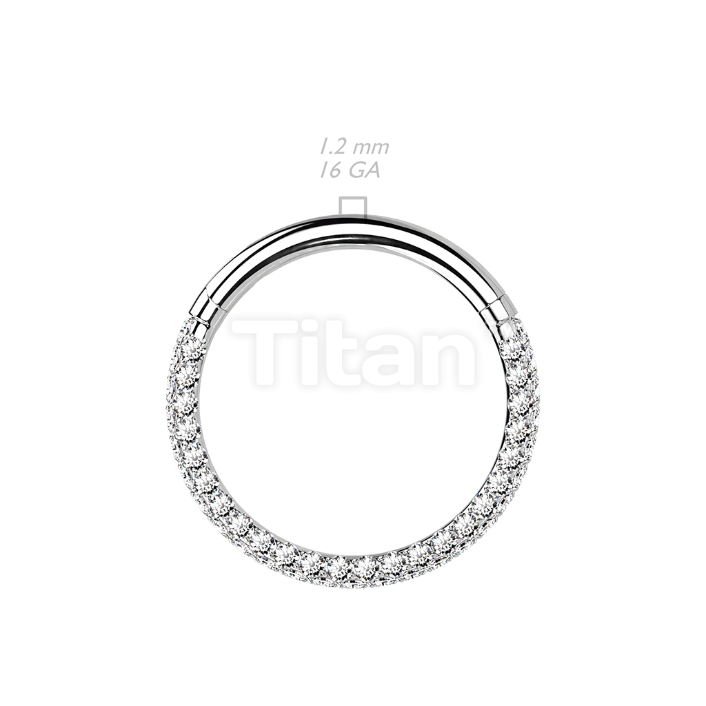 Implant Grade Titanium Hinged Segment Hoop Ring With 3 Pave CZ Sides