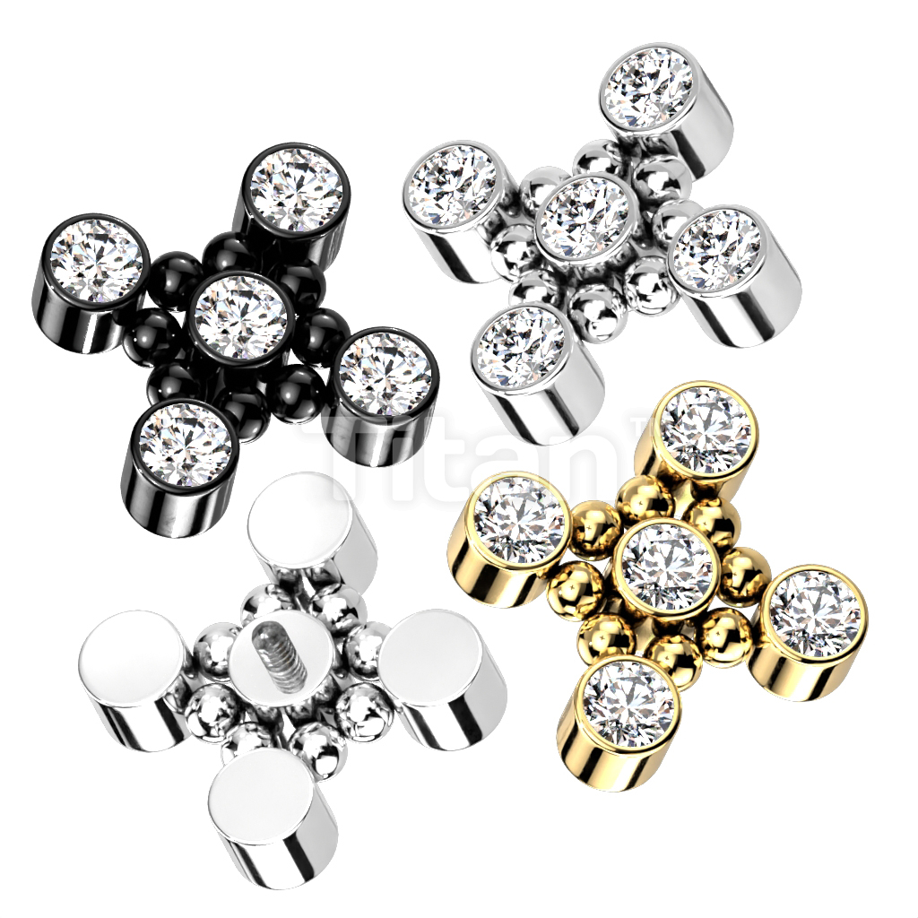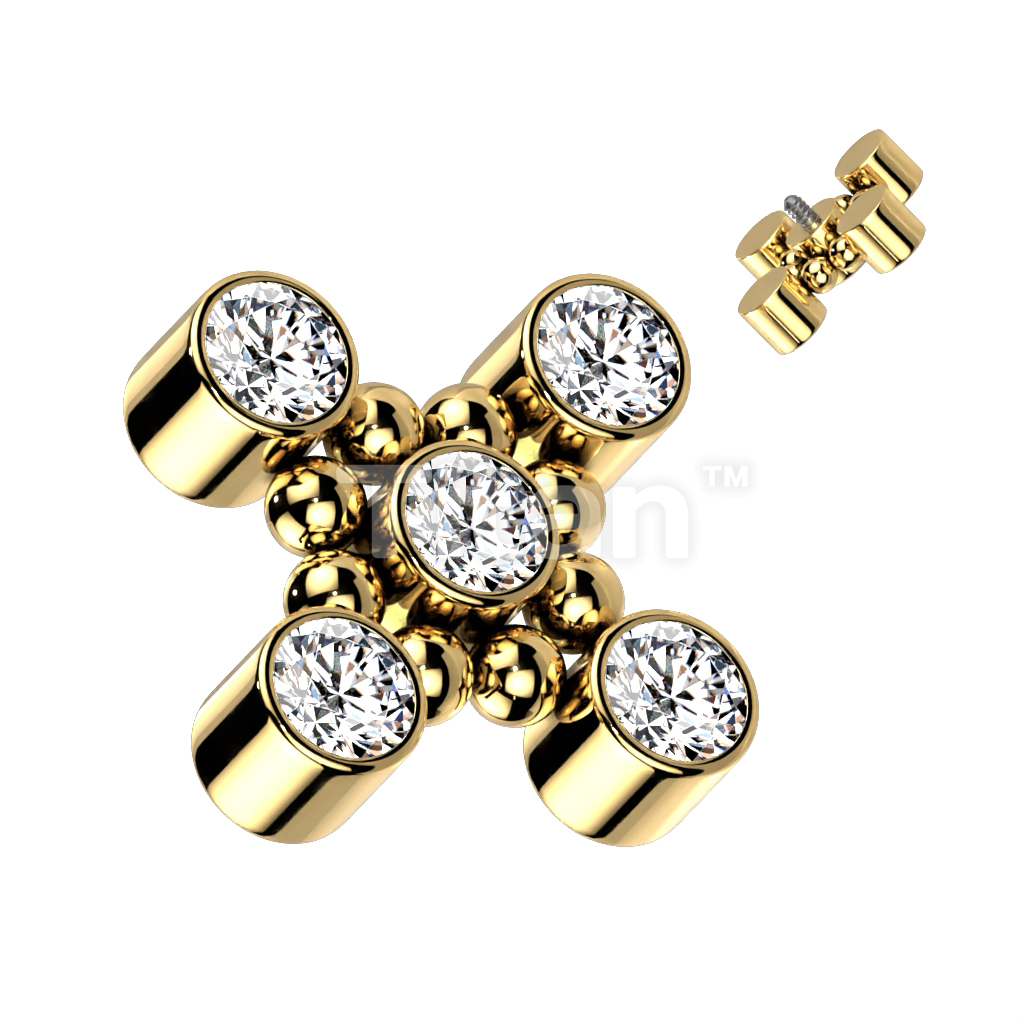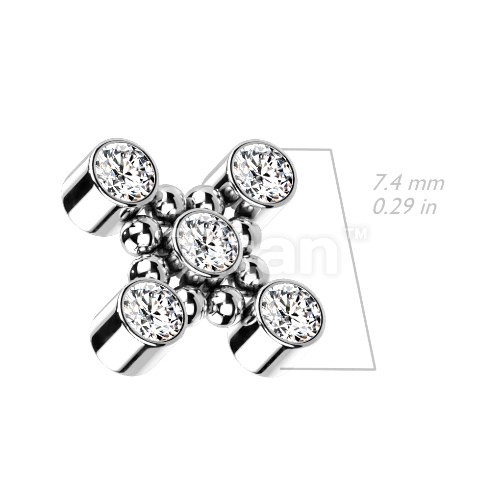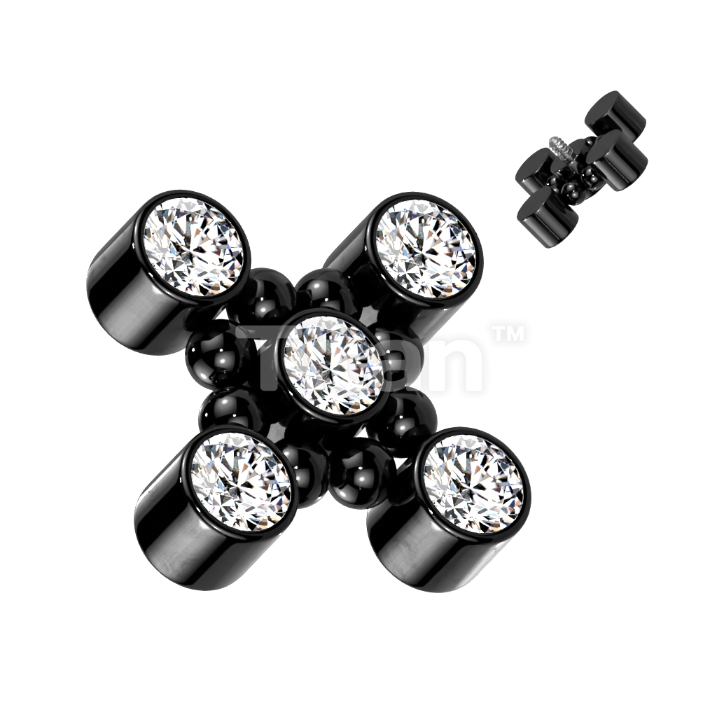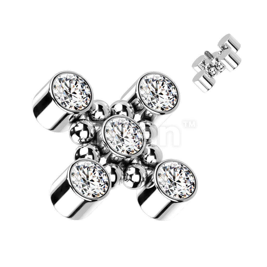 Implant Grade Titanium Internally Threaded Square Shaped Top With CZs and Beaded Balls