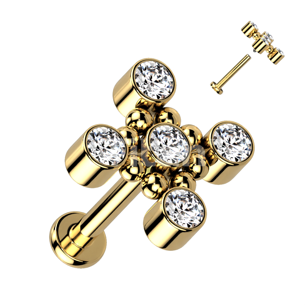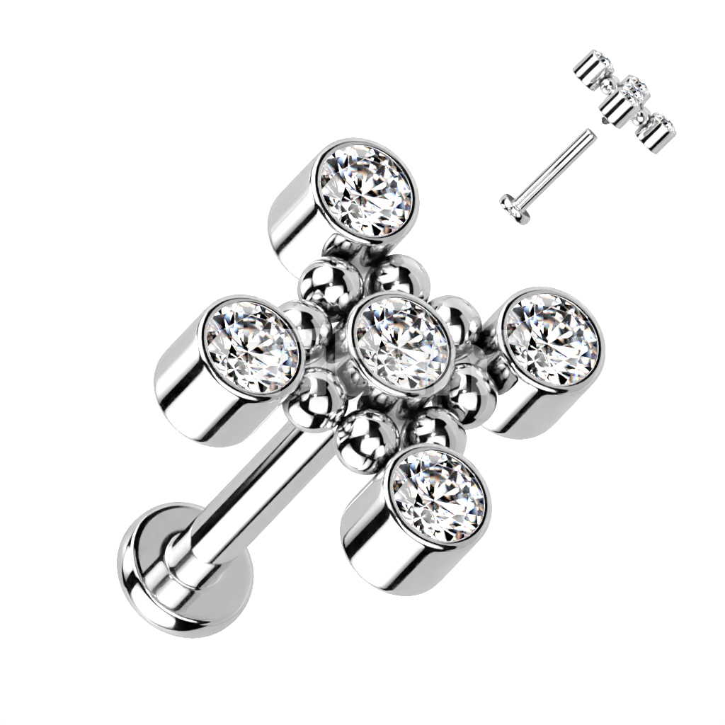 Implant Grade Titanium Internally Threaded Square Shaped Top With CZs and Beaded Balls Labret