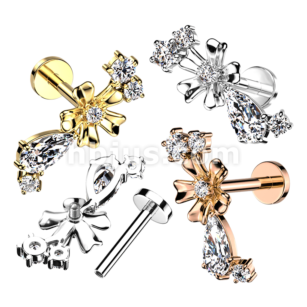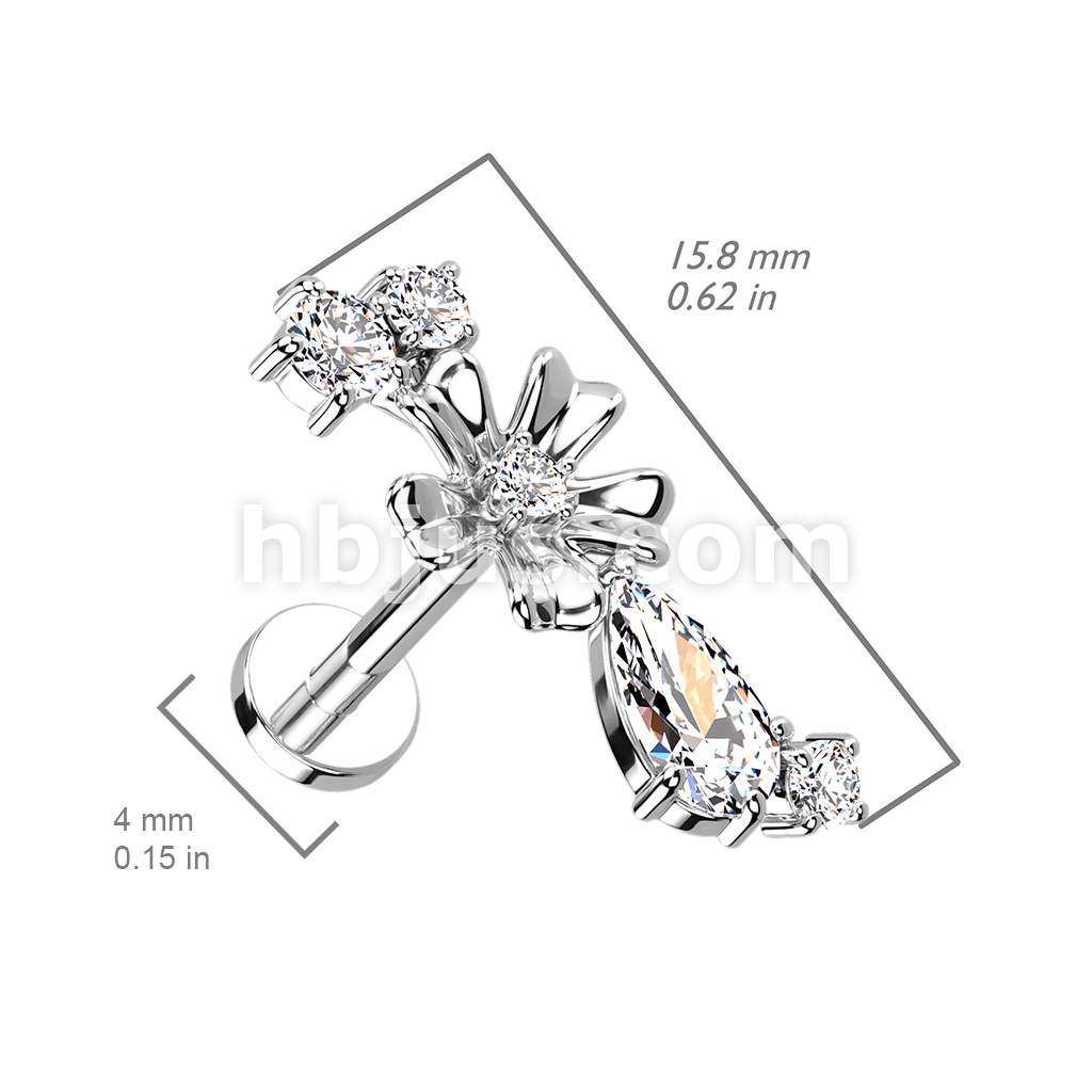 CZ Center Flower With CZ Vine Internally Threaded 316L Surgical Steel Flat Back Stud for Labret, Monroe, Cartilage and More