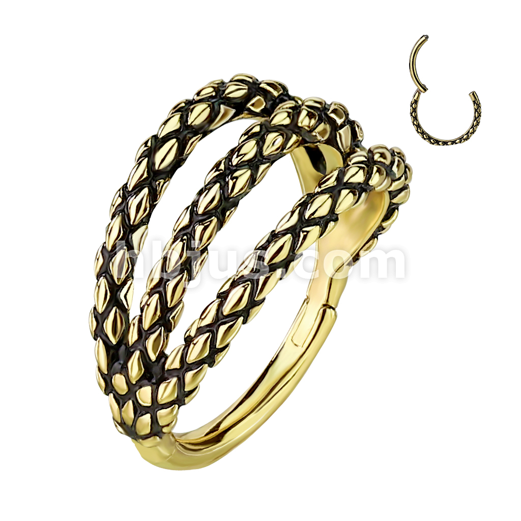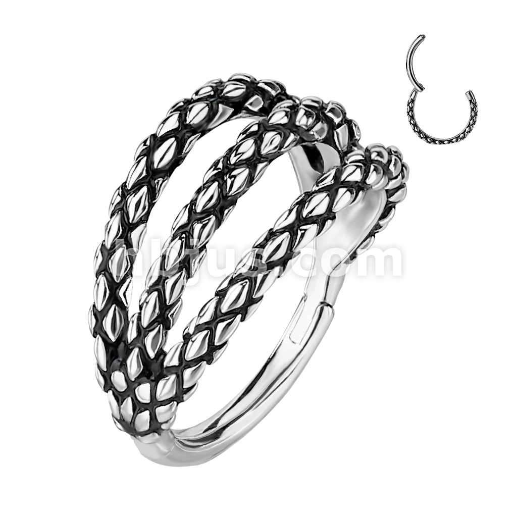 High Quality Precision 316L Surgical Steel Hinged Segment Triple Hoop with Oxidized Lizard Skin