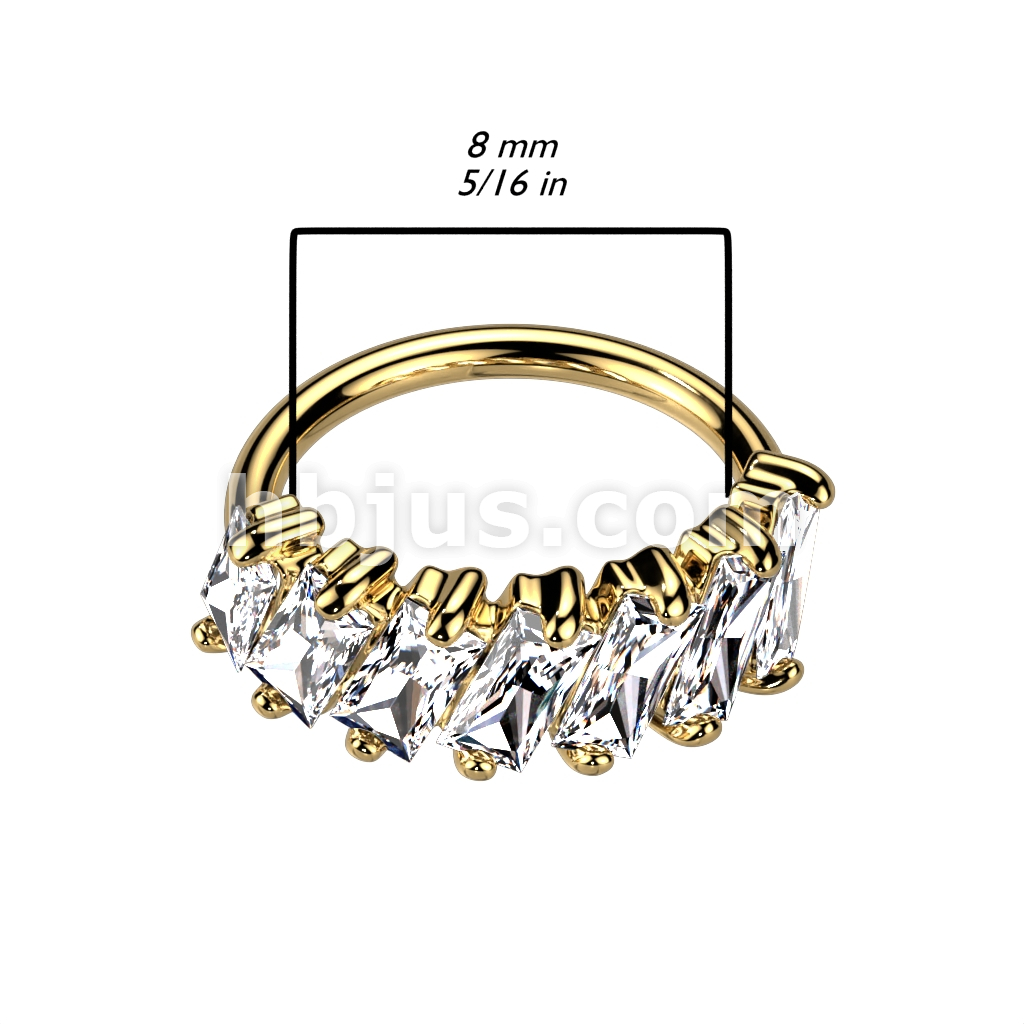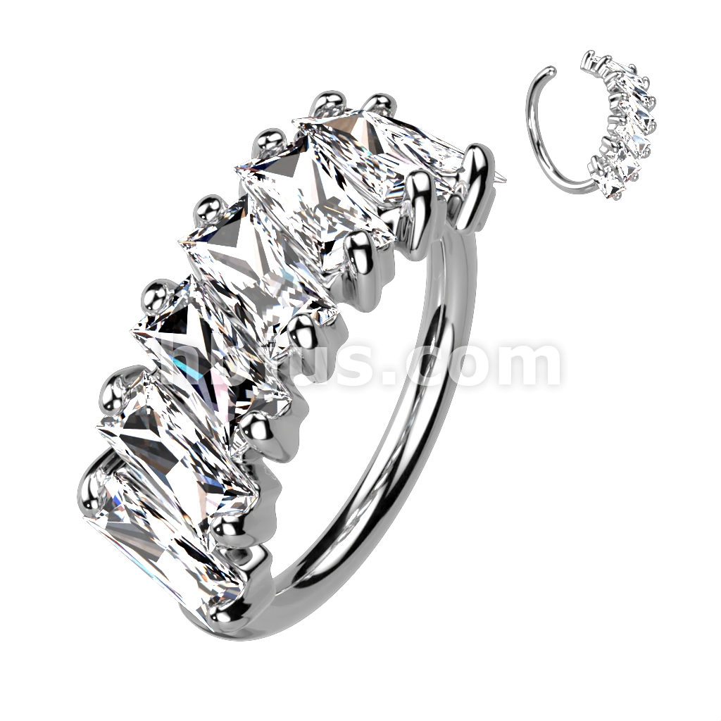 Diagonal Pave Princess Cut CZ Bendable Hoop for Septum, Daith, Ear Cartilage, Nose and More