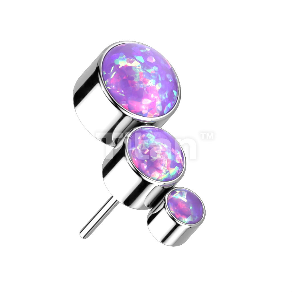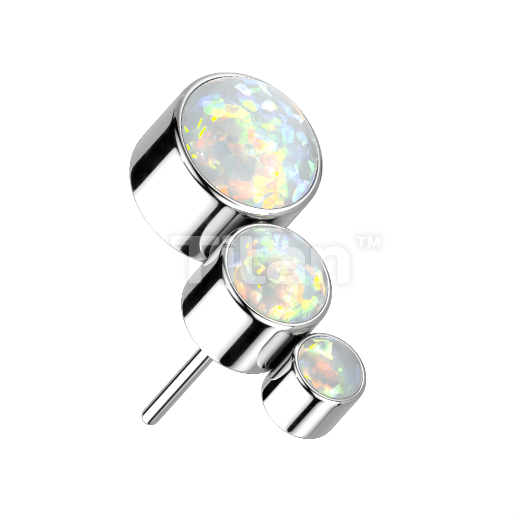 Implant Grade Titanium Threadless Push In With Descending Bezel Set 3 Opal Curved Top
