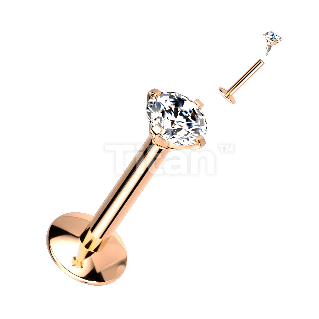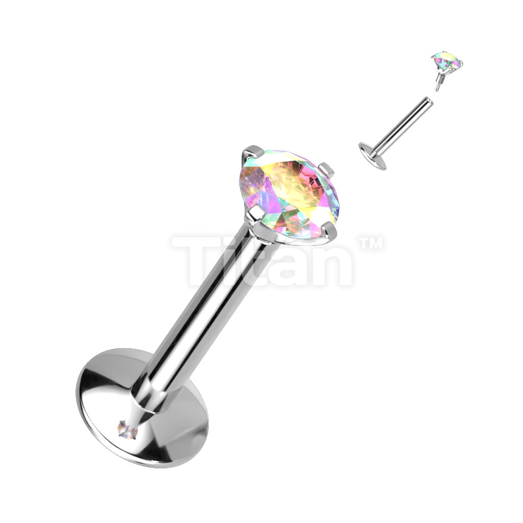 Implant Grade Titanium Internally Threaded 4mm Convex Base Labret With Prong Set CZ Extended Thread Top