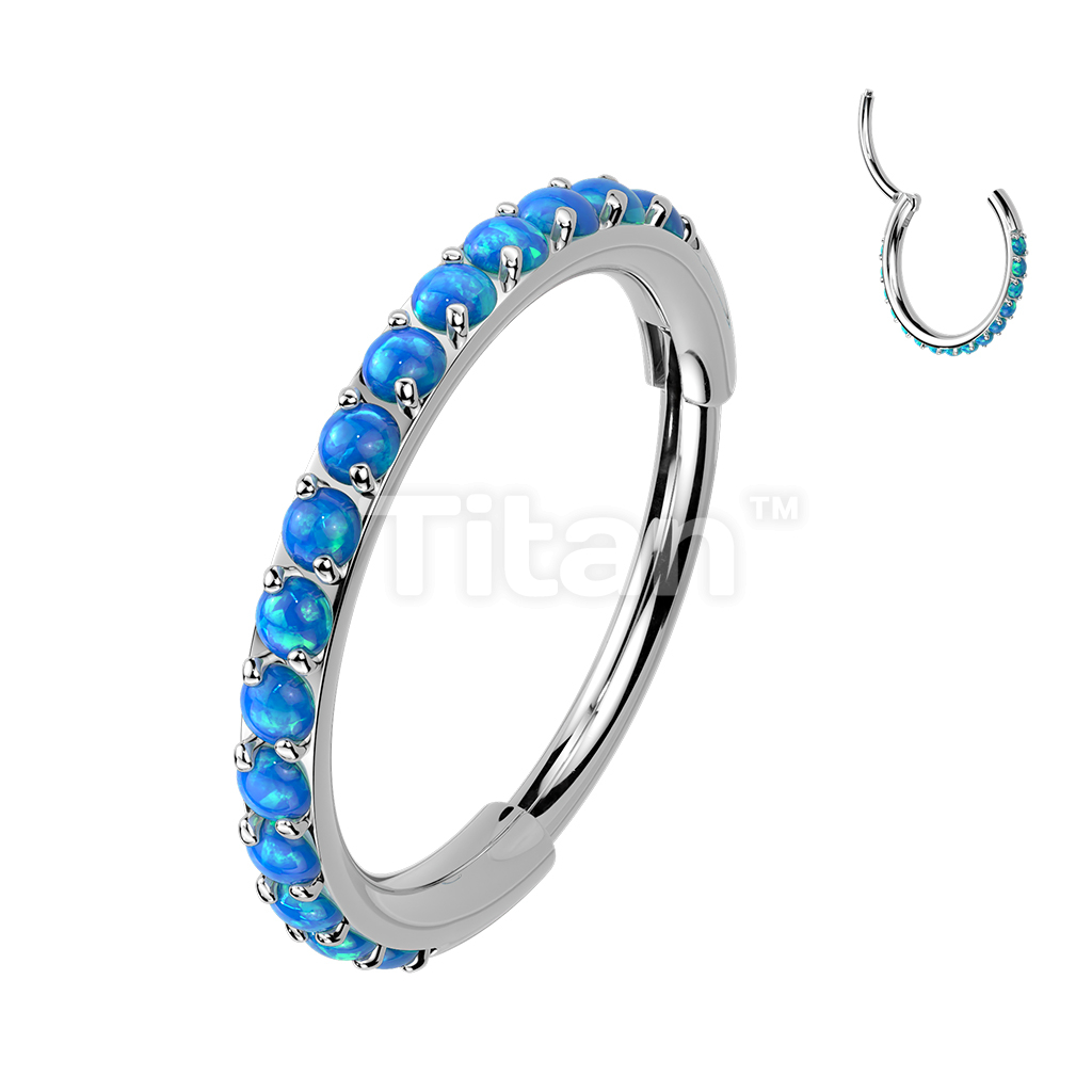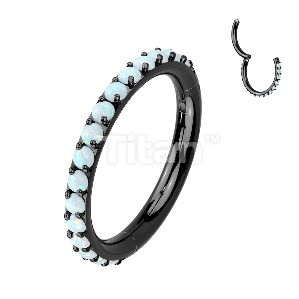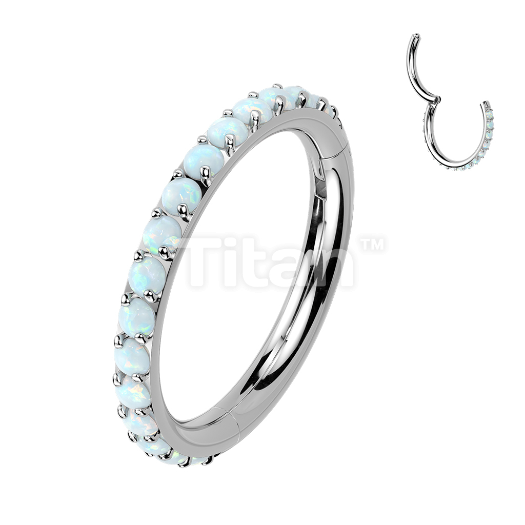 Implant Grade Titanium Hinged Segment Hoop Ring Lined With Outward Facing Pave Opals. 16ga-20ga