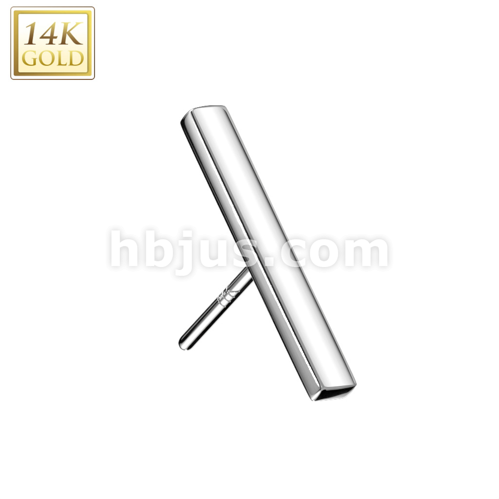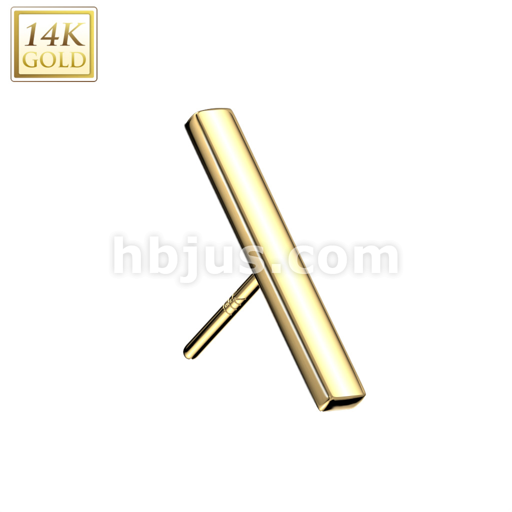 14K Gold Threadless Push In Flat Long Bar Top