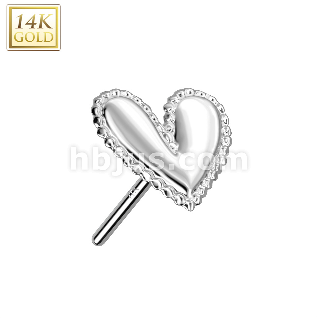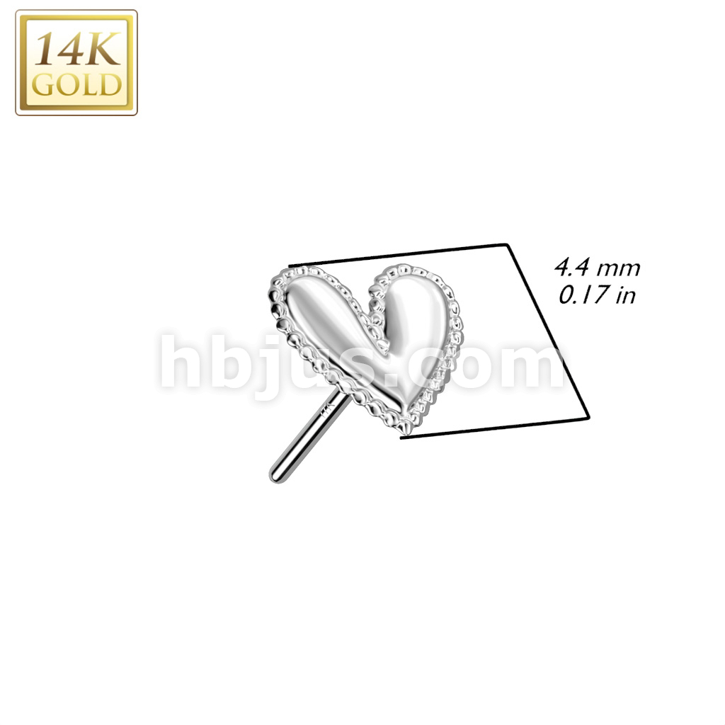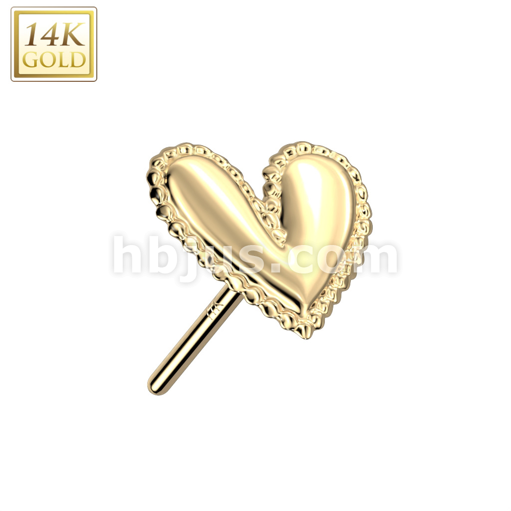 14K Gold Threadless Push In Heart With Beaded Scalloped Edge Top