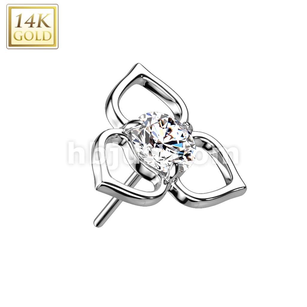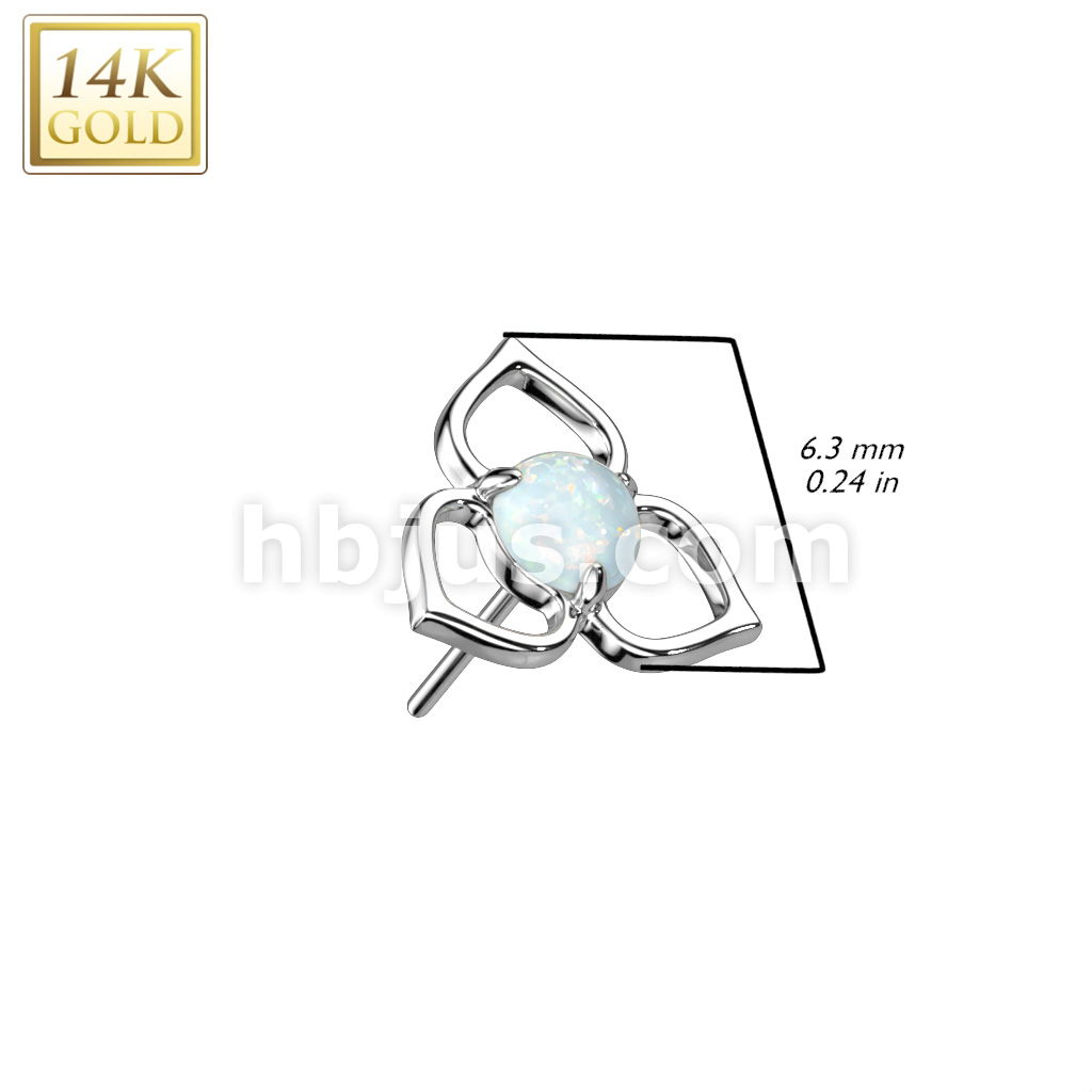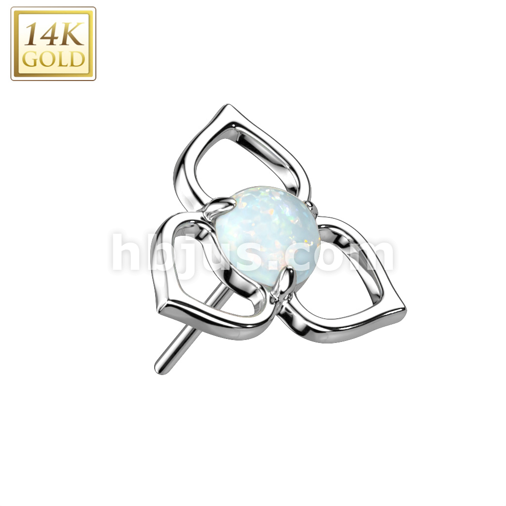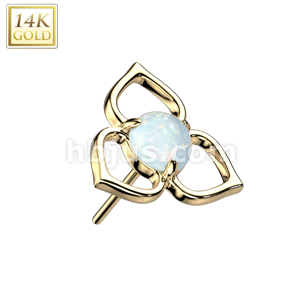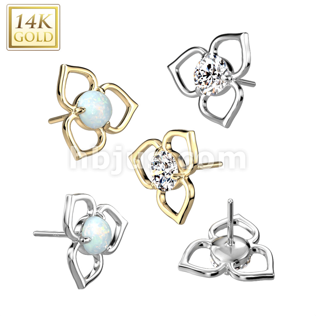 14K Gold Threadless Push In Hollow Flower Top With Opal or CZ Center