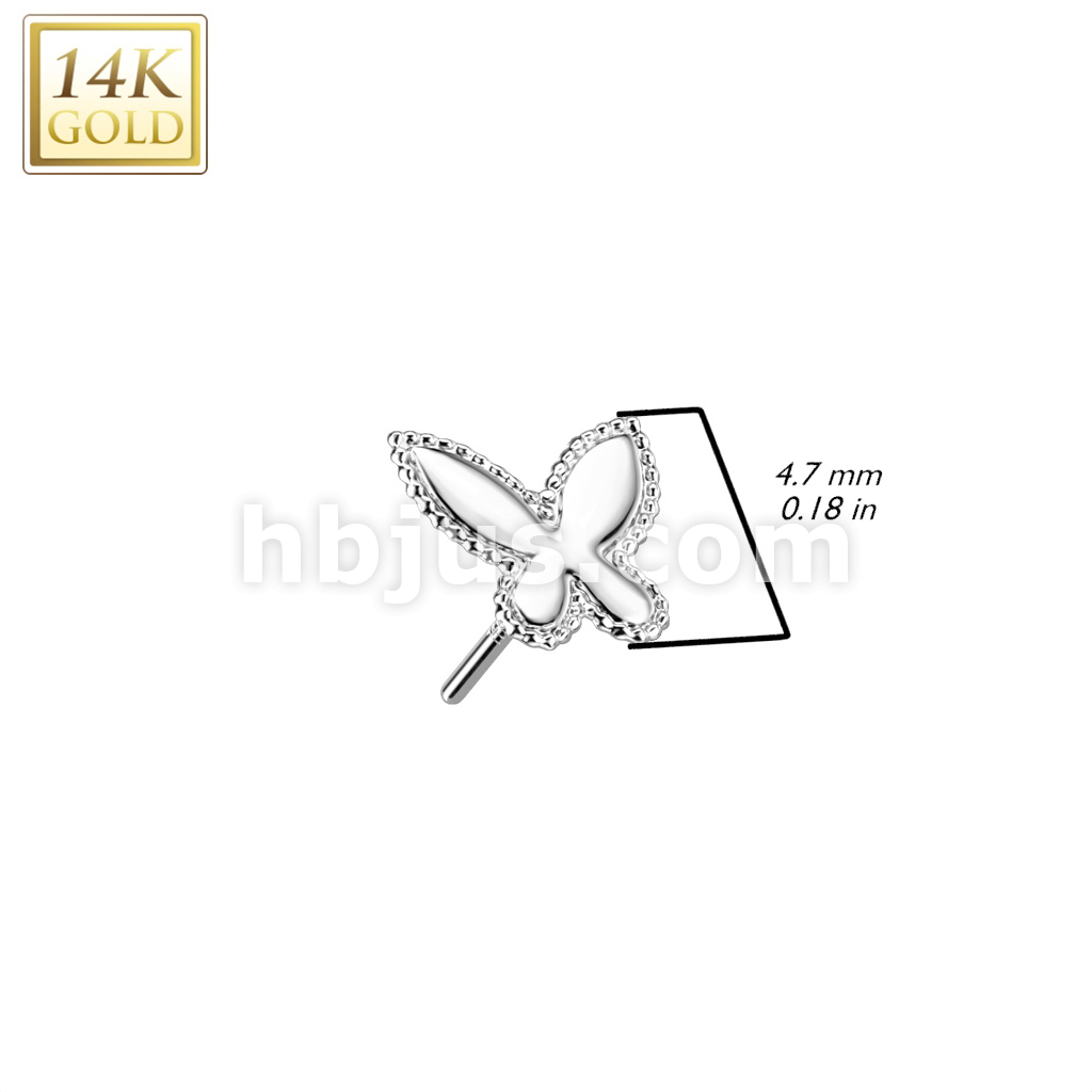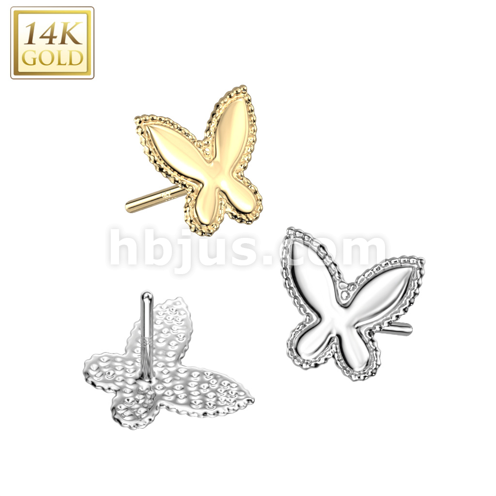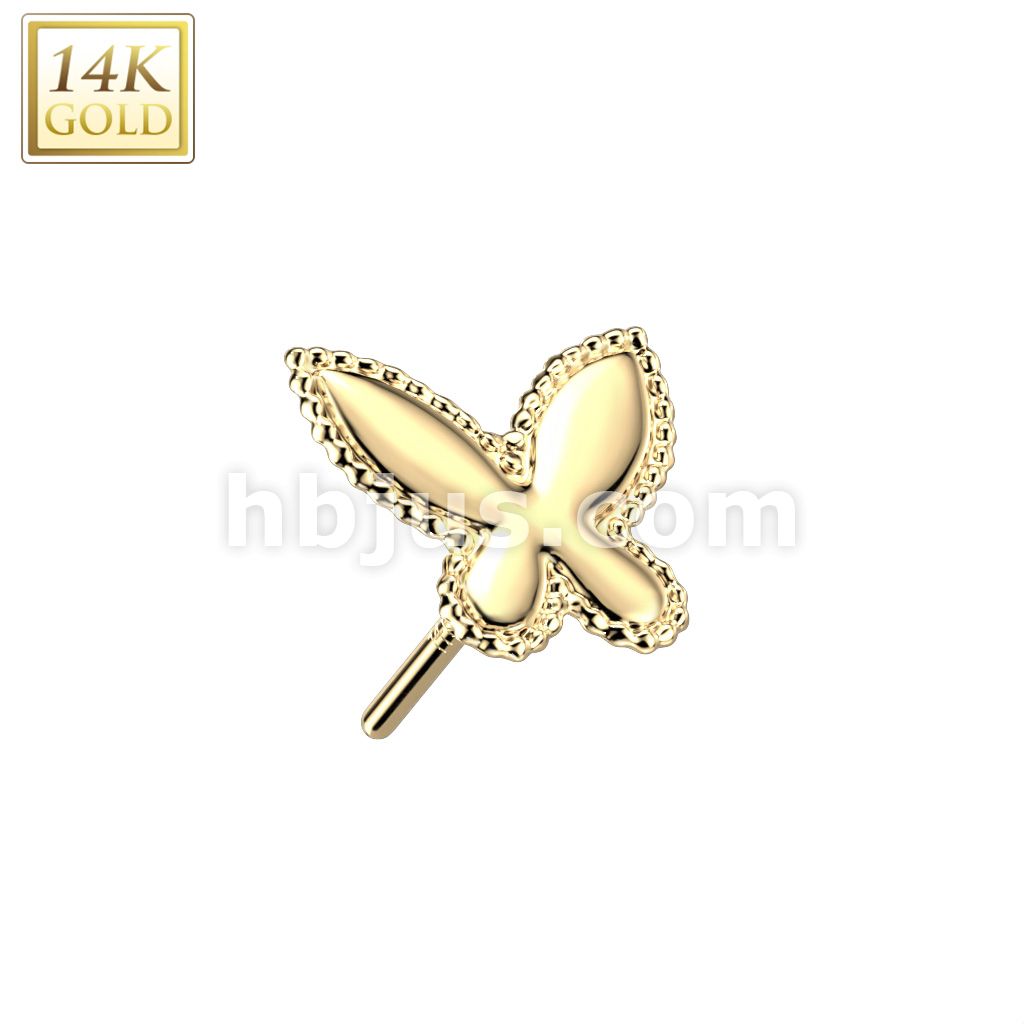 14K Gold Threadless Push In Butterfly Top With Flat Beaded Edge