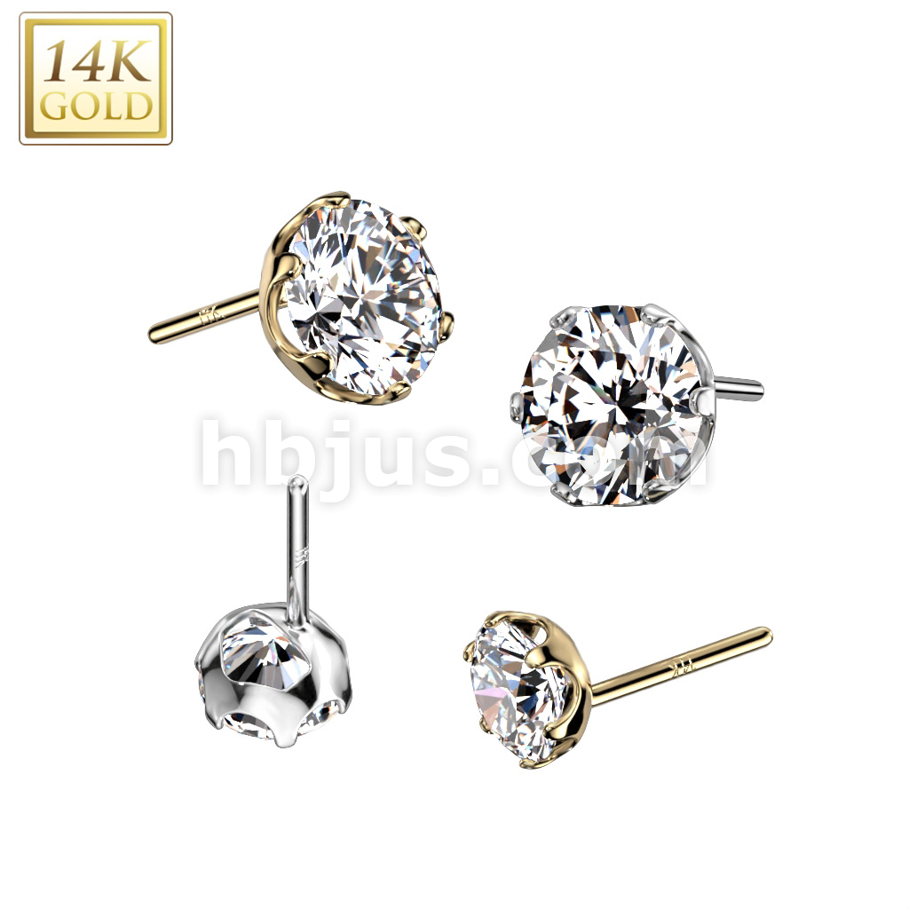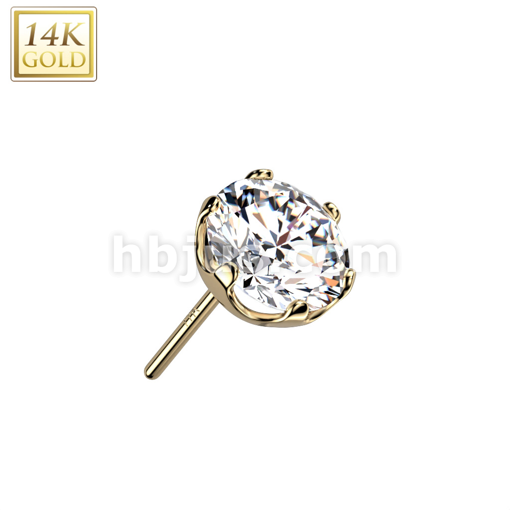 14K Gold Threadless Push In Top With 6 Prong Set CZ