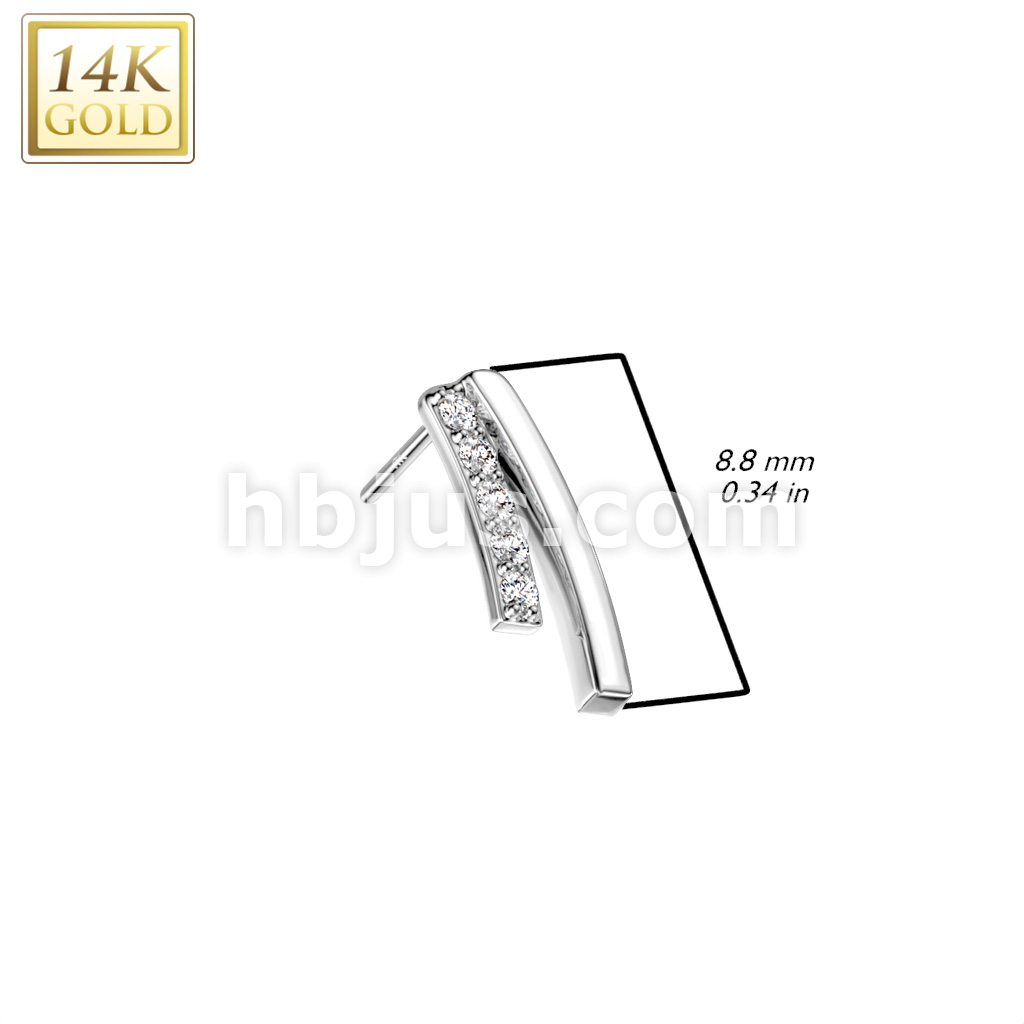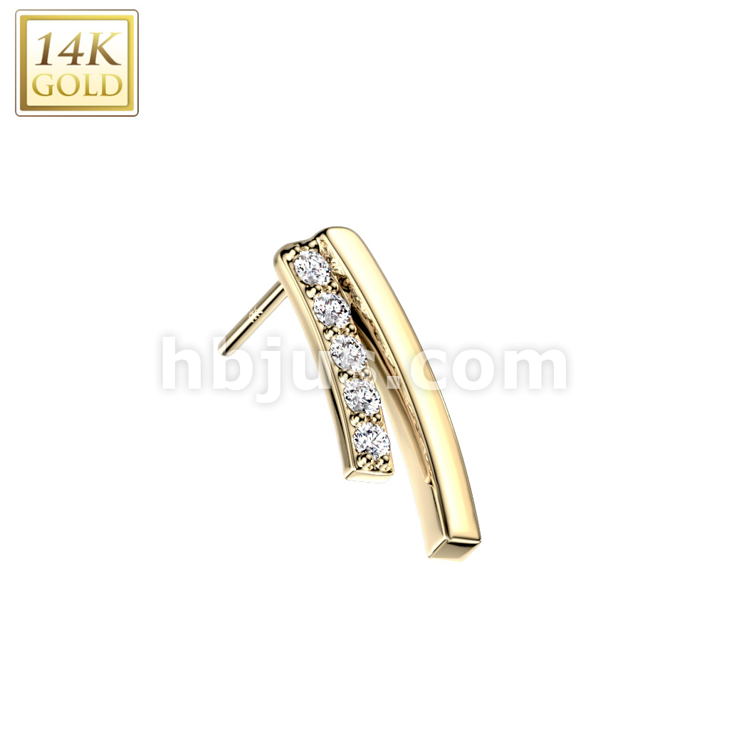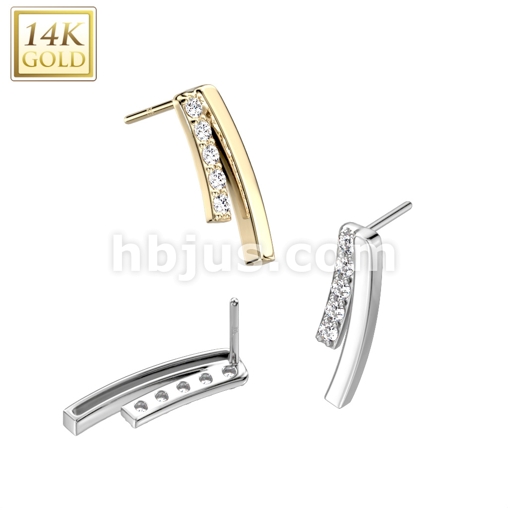 14K Gold Threadless Push In Double Curved Bar/CZ Top