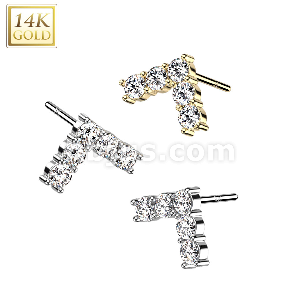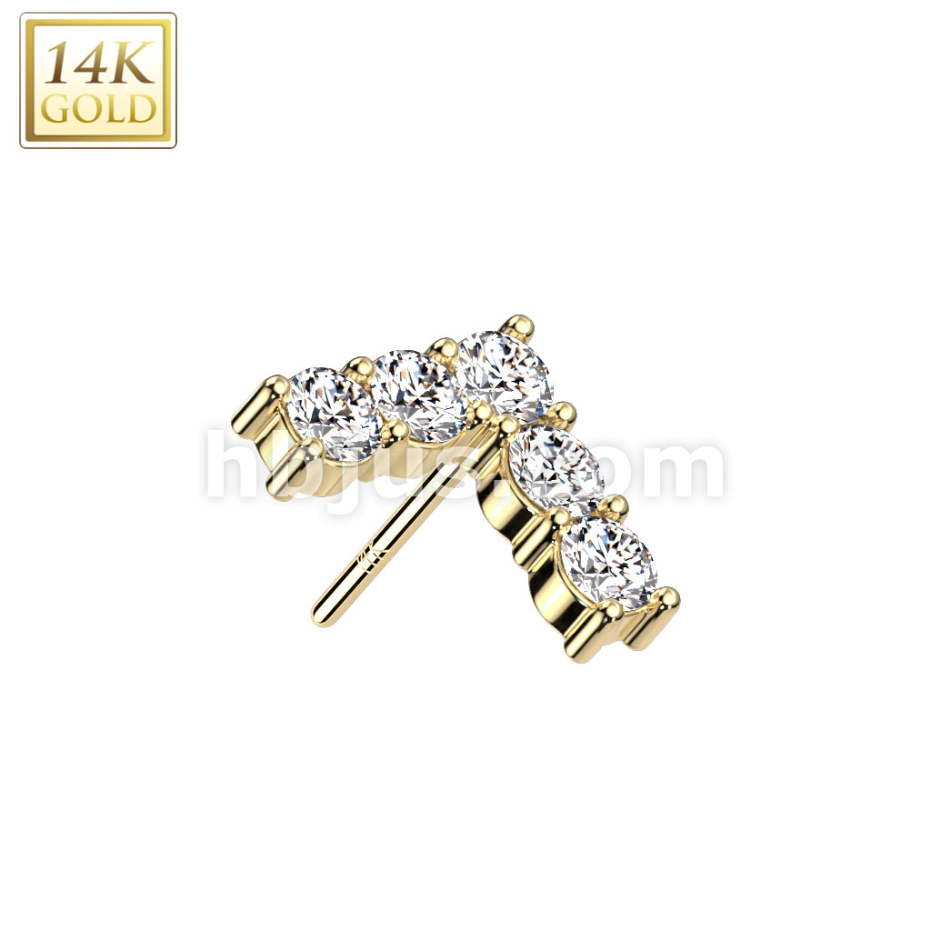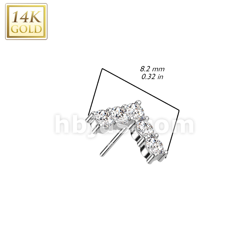 14K Gold Threadless Push In 5 CZ Set Chevron Top