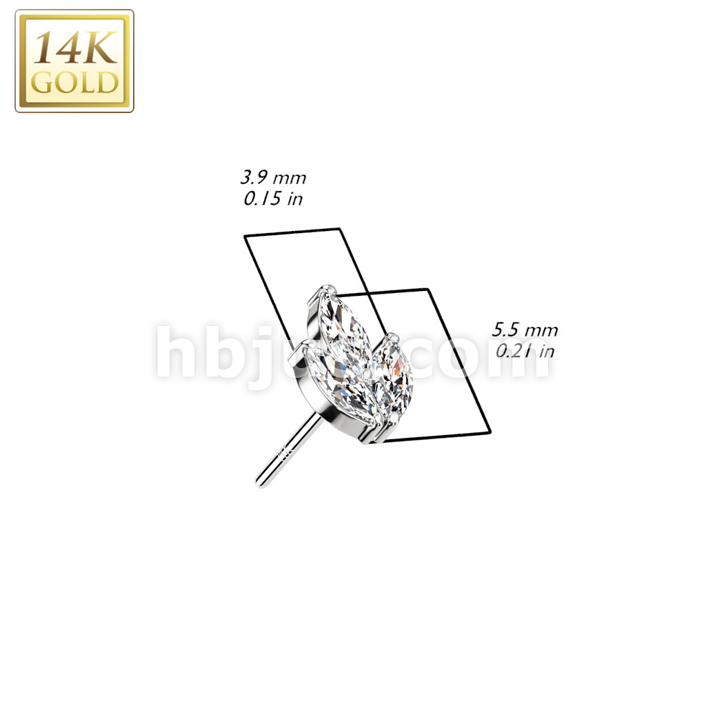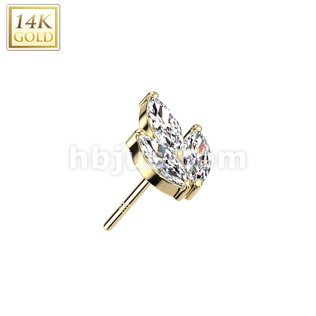 14K Gold Threadless Push In 3 Marquise CZ Leaf Top