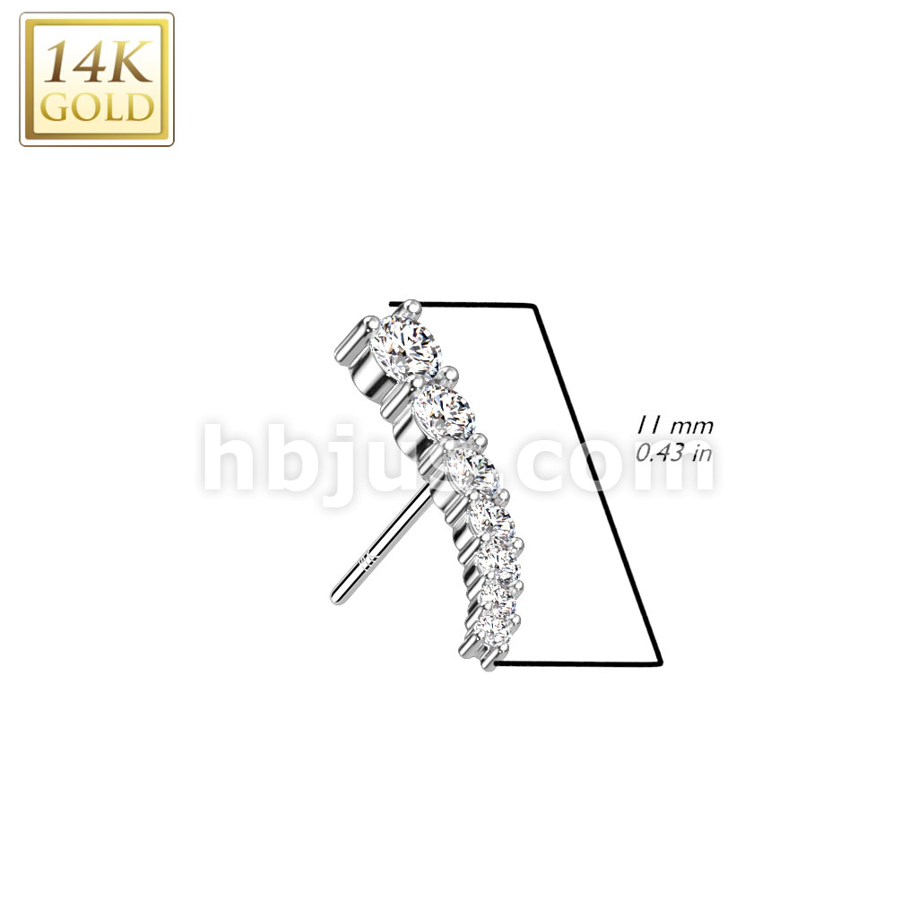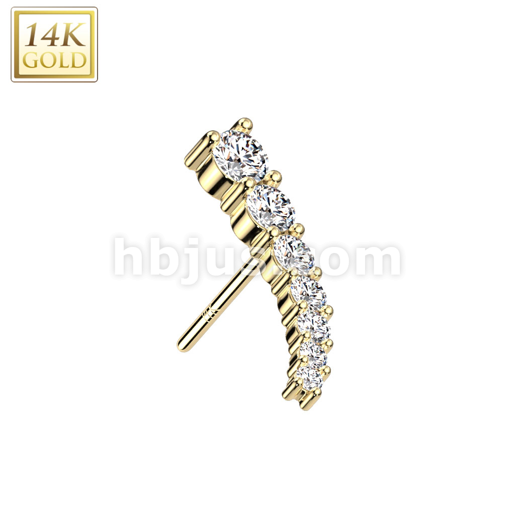 14K Gold Threadless Push In With Descending 7 CZ Curve Prong Set Top