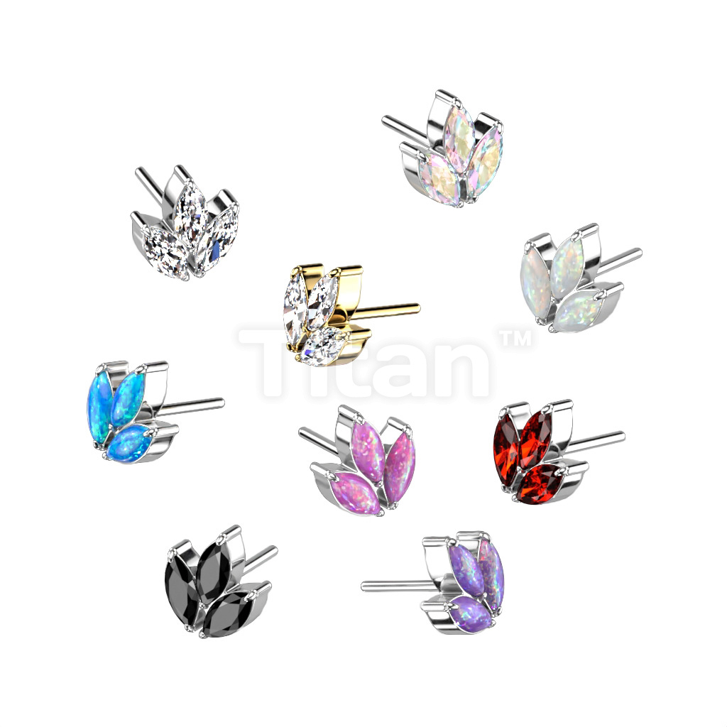 Implant Grade Titanium Threadless Push In 3 Marquise CZ or Opal Leaf Top
