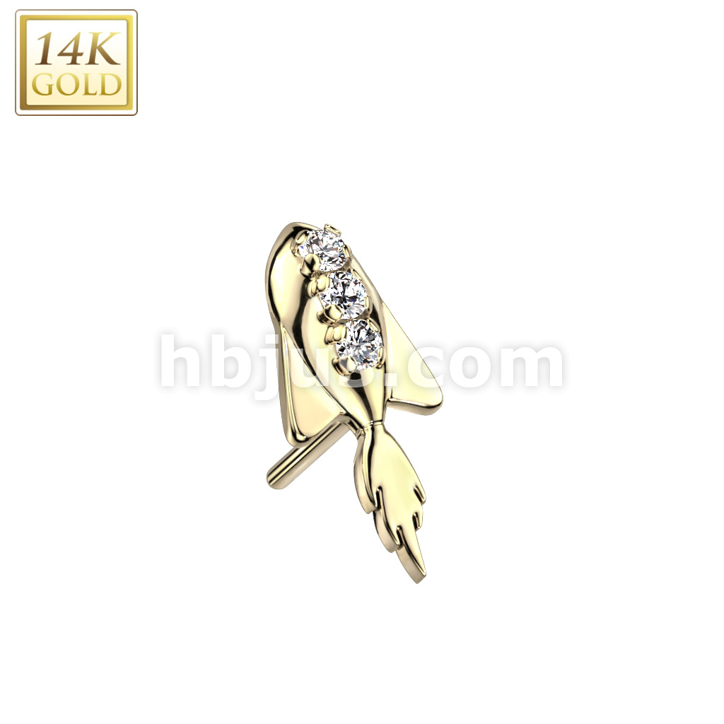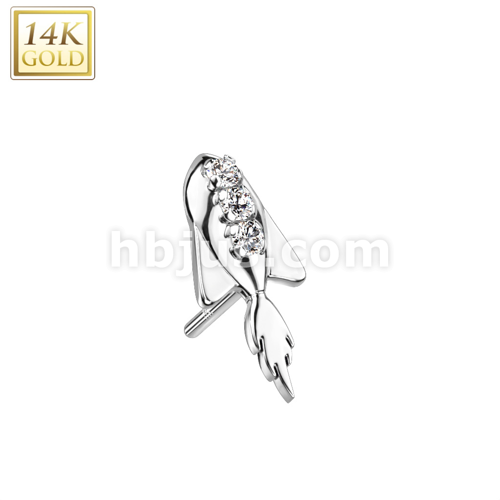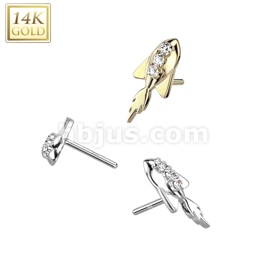 14K Gold Threadless Push In Rocket Ship With Triple CZ Top
