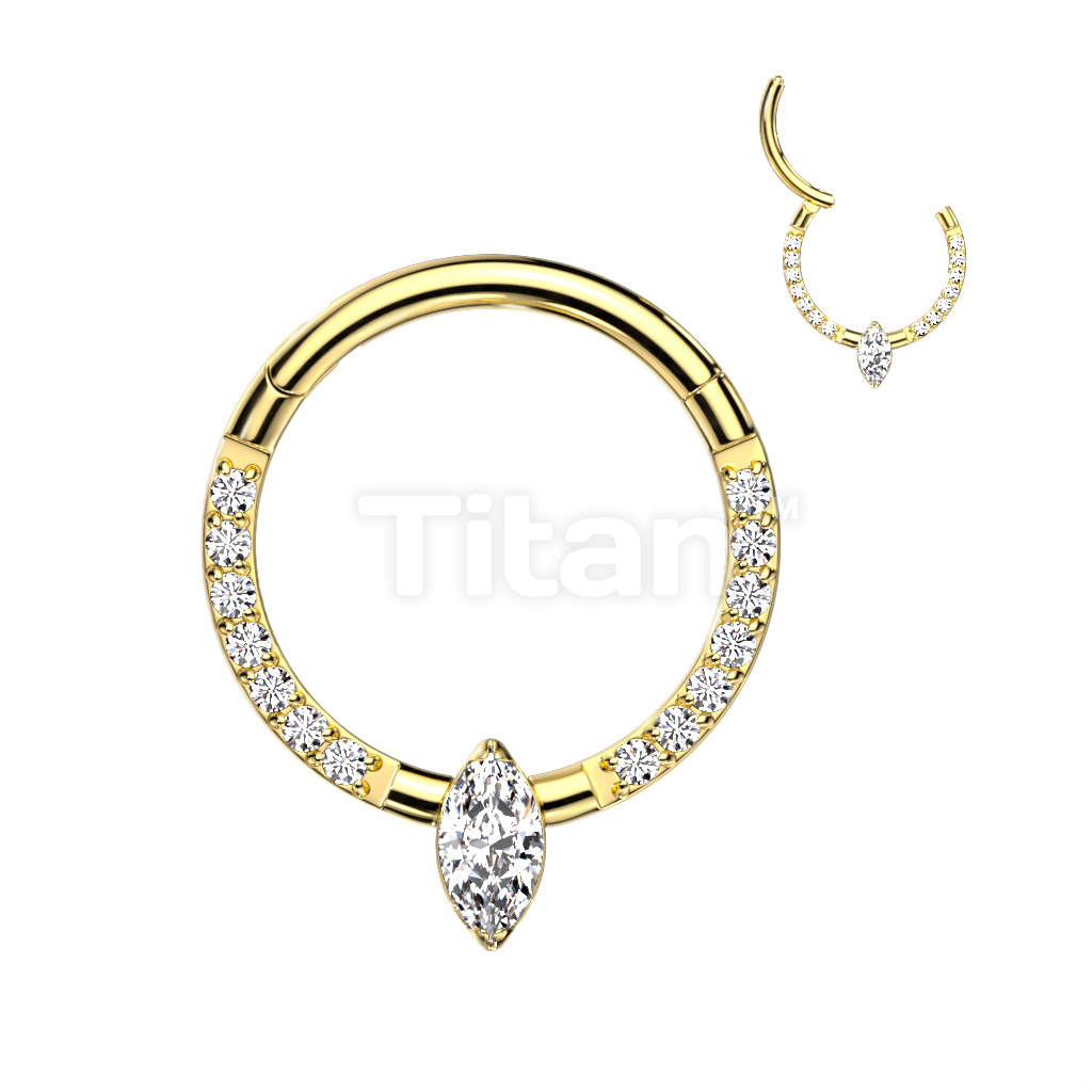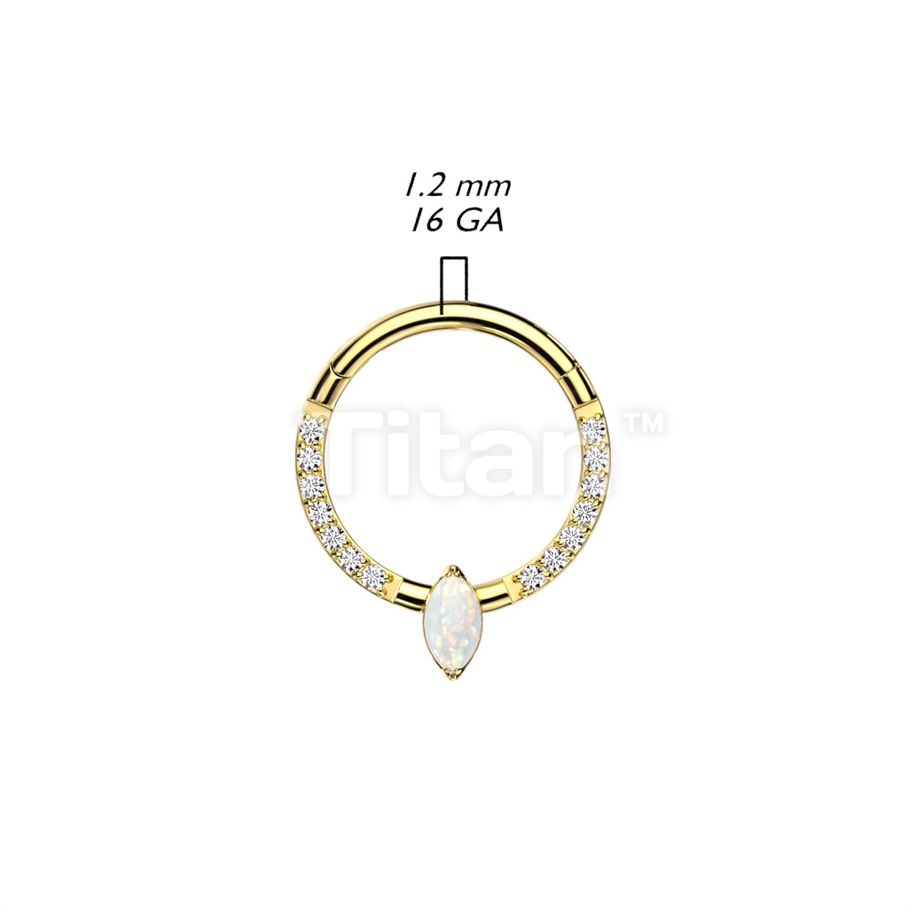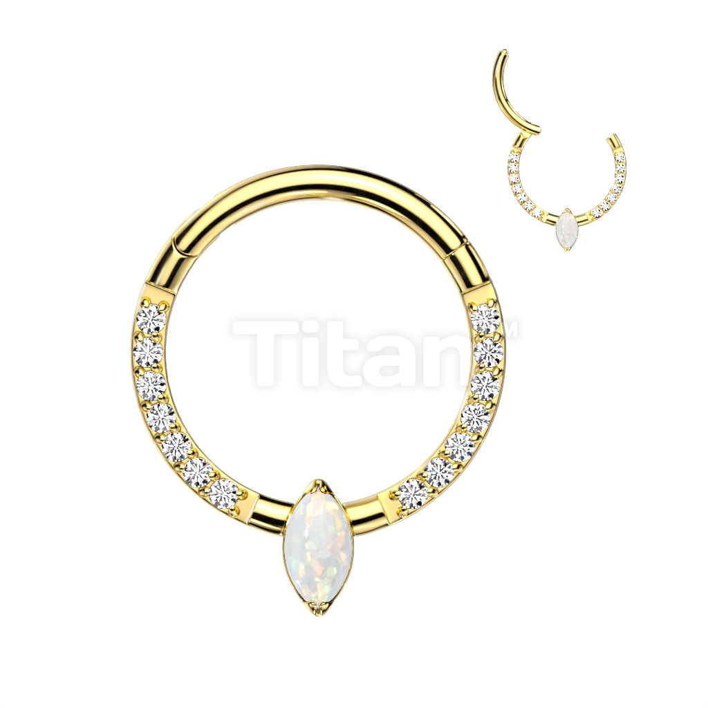 Implant Grade Titanium Hinged Segment Hoop Ring With Marquise CZ or Opal Center and Pave CZ Sides