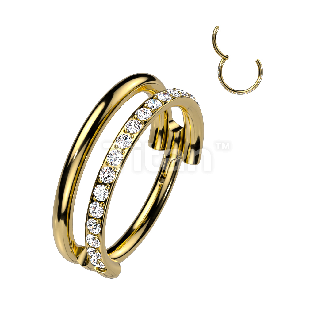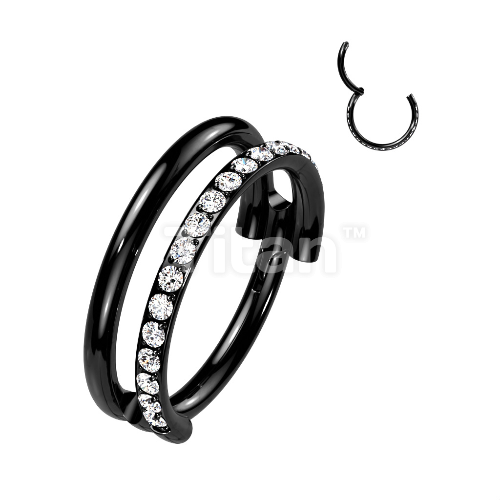 Implant Grade Titanium Hinged Segment Double Hoop Ring With One Outward Facing Pave CZ Line
