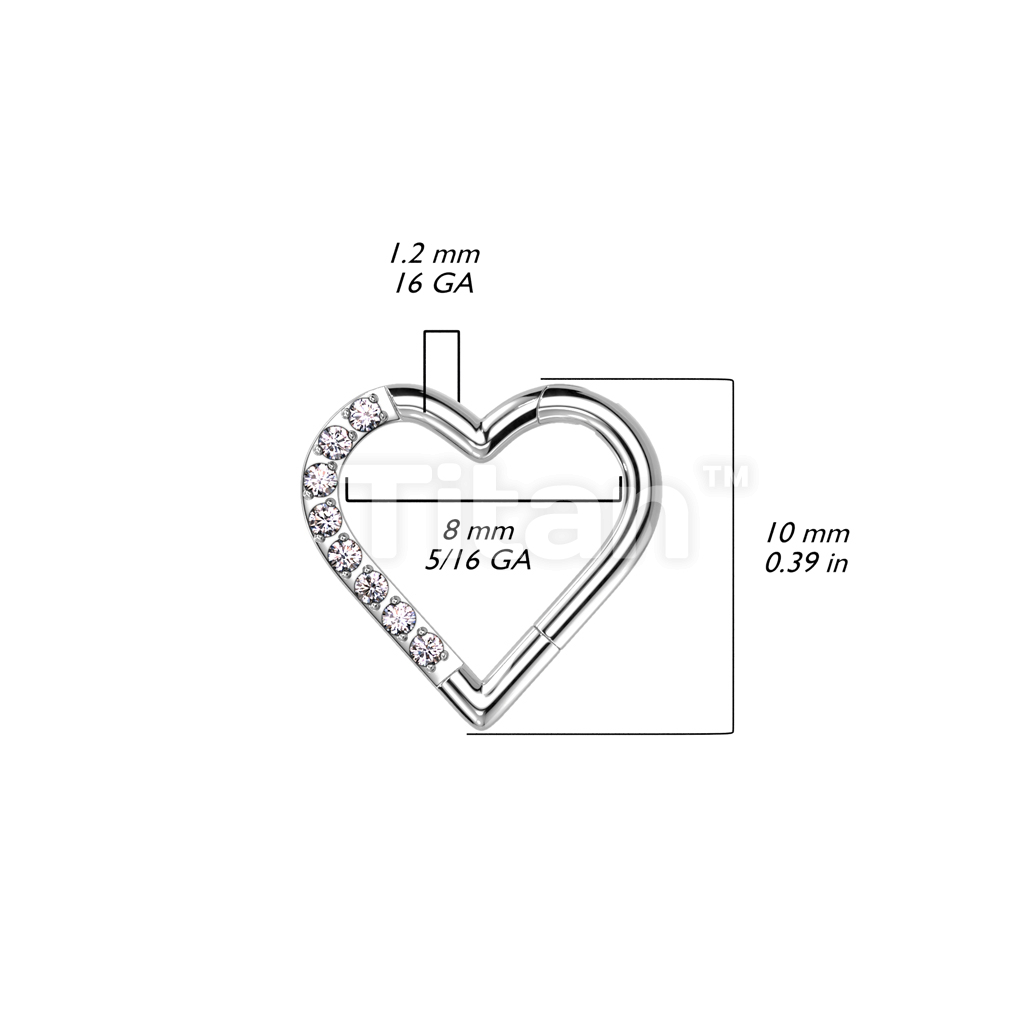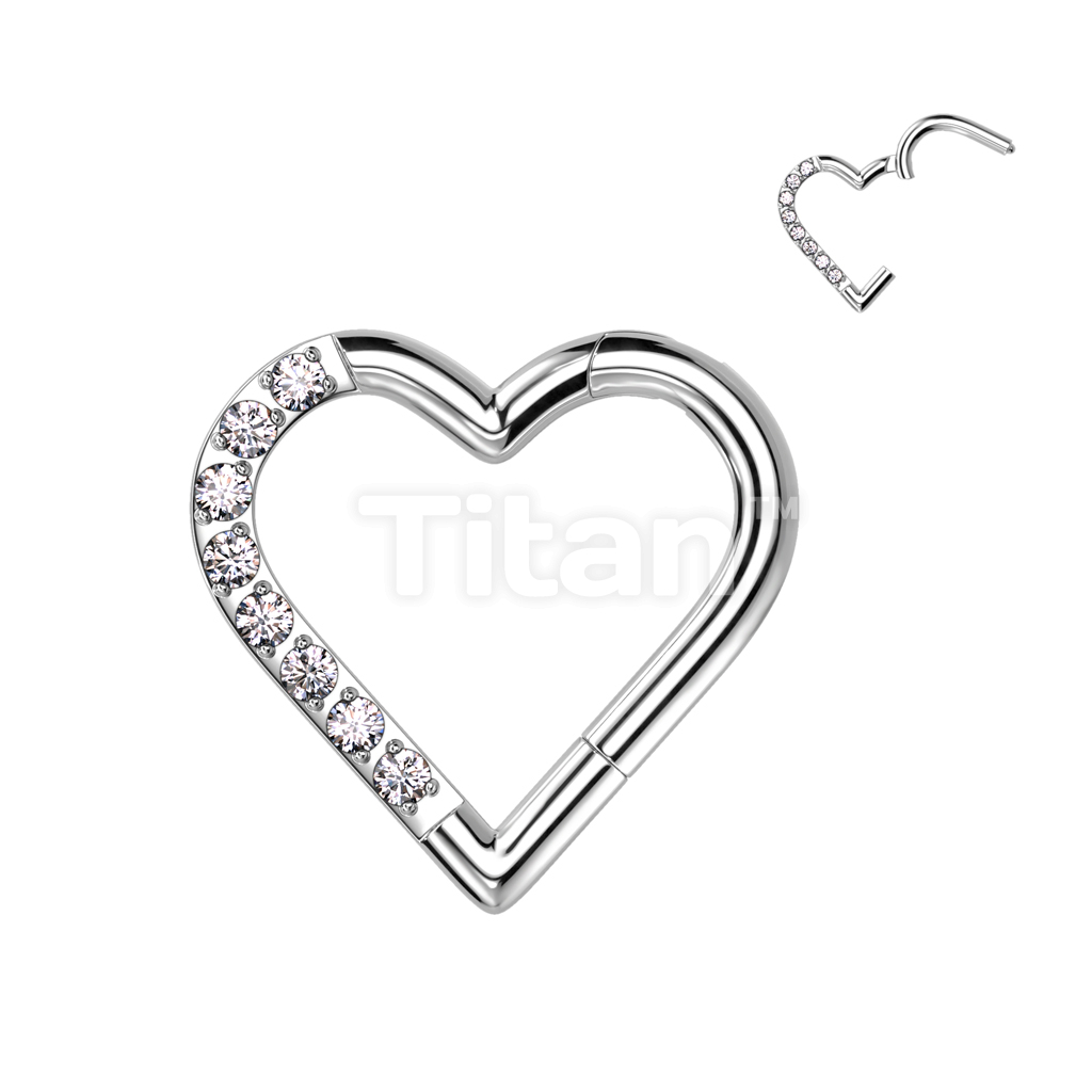 Implant Grade Titanium Hinged Segment Hoop Ring With Half Pave CZ Heart